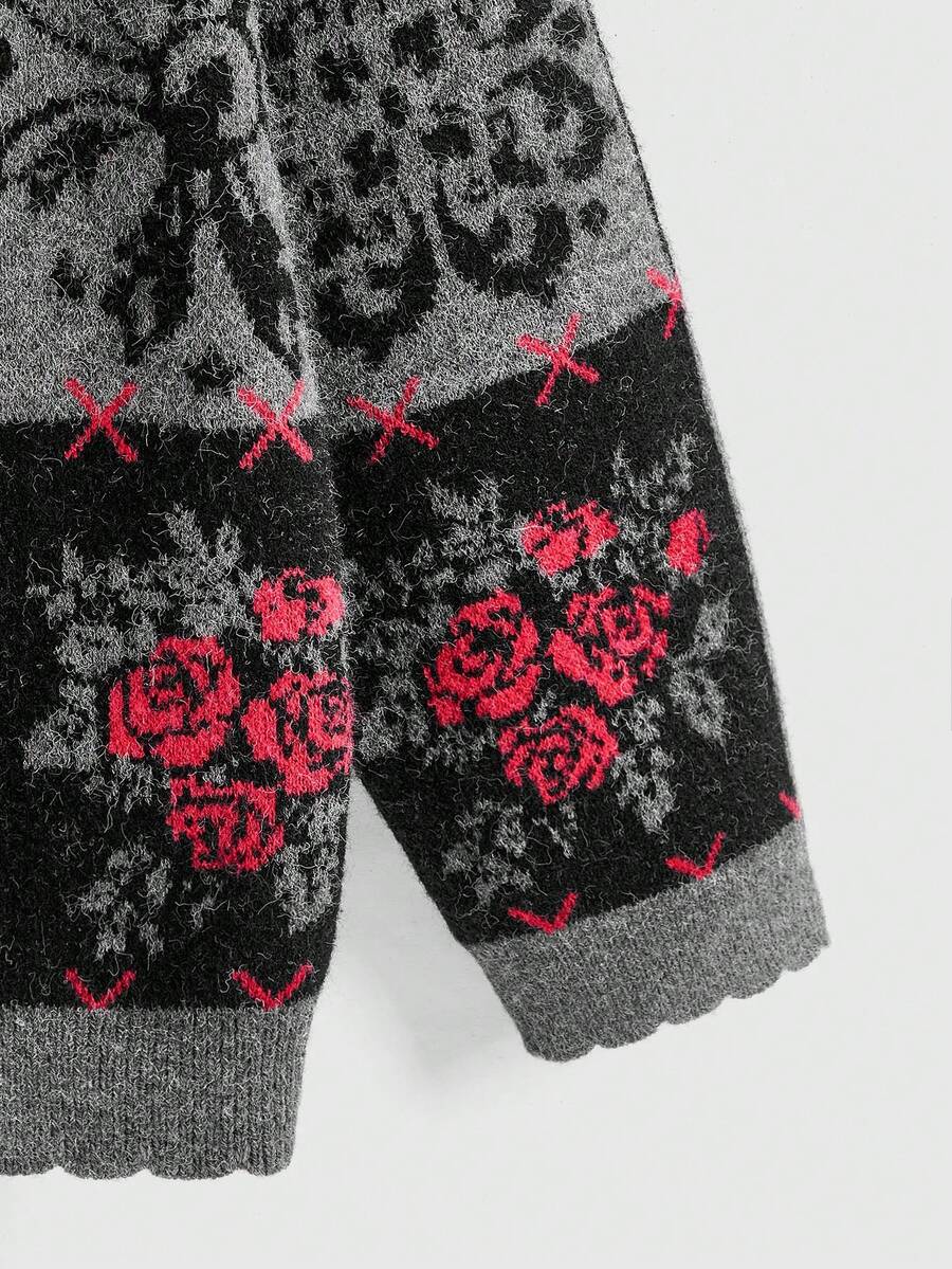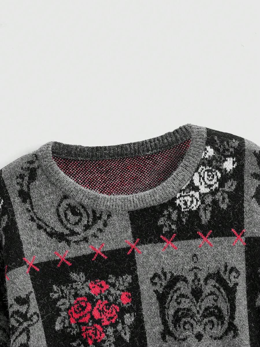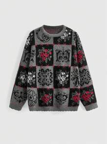 Academia كنزة صوفية جاكارد مافيرة بنمط زهري عتيق للمقاسات الكبيرة