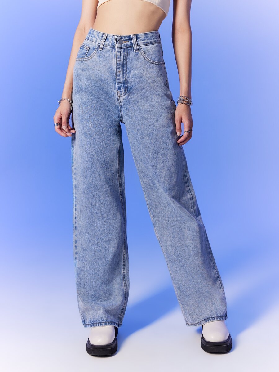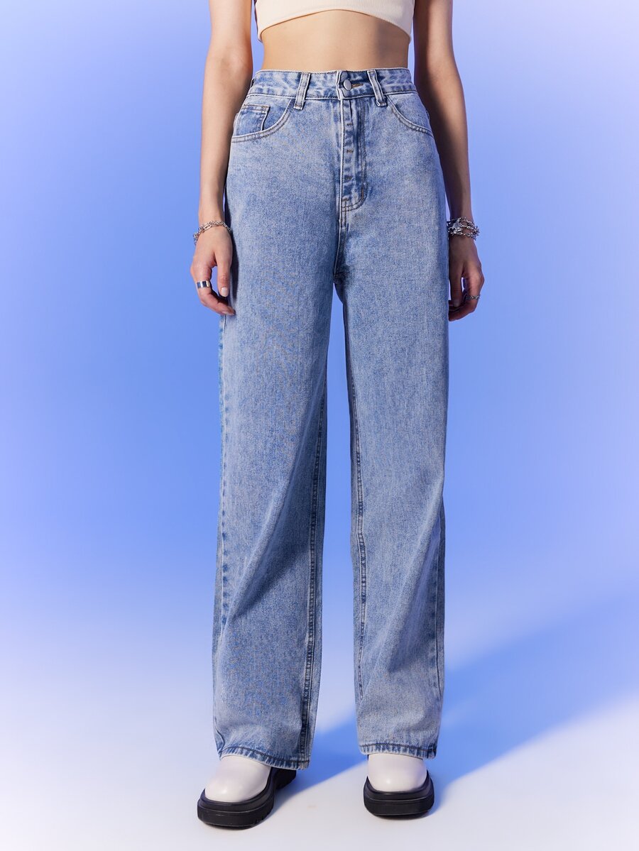 بنطلون جينز غسيل الحمض ساق عريضة