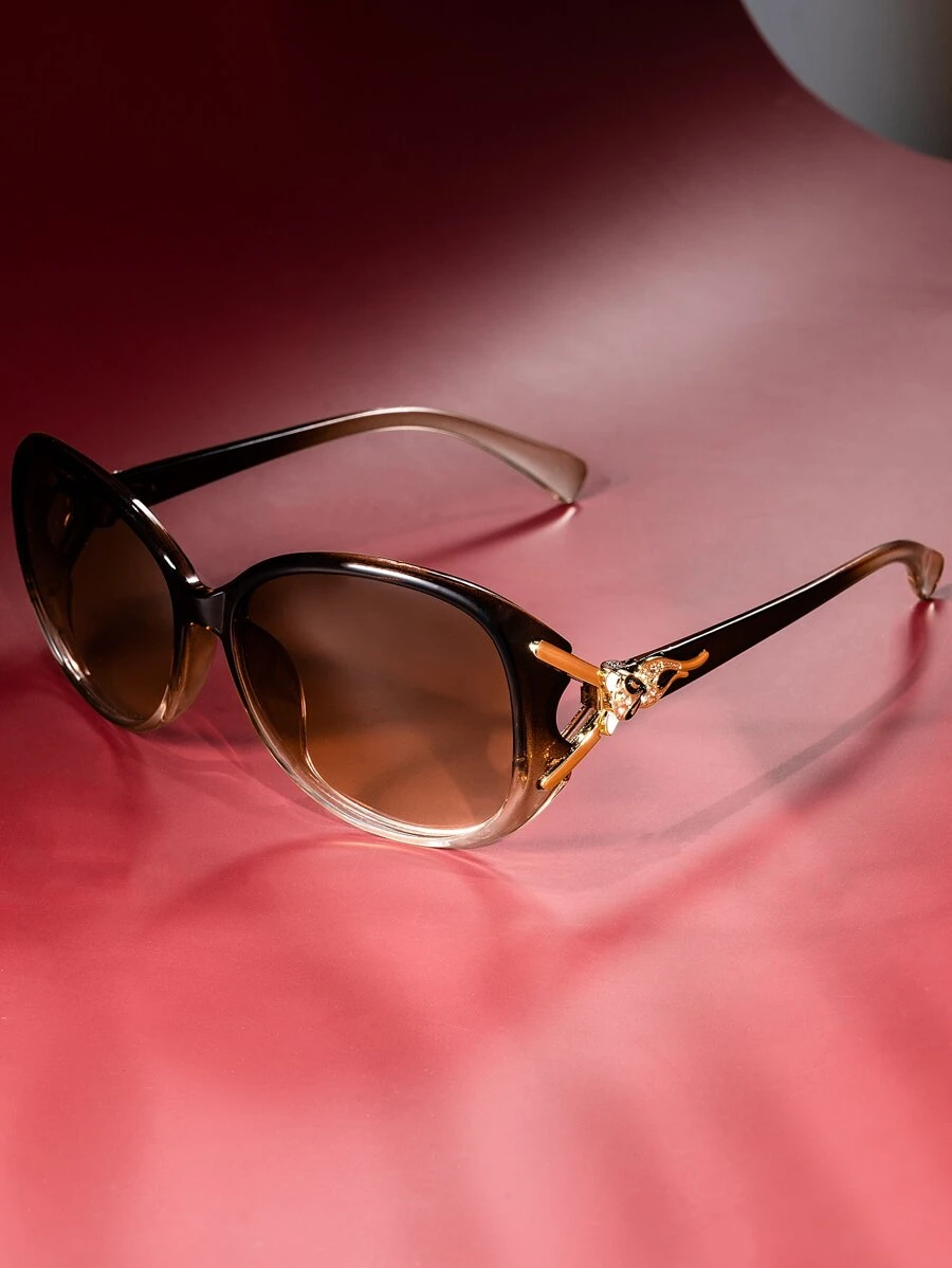 زوج من نظارات الشمس بتصميم دائري على شكل رأس الثعلب للنساء، نظارات أنيقة مناسبة للسفر، اكسسوارات شاطئ ونظارات شمس للنساء