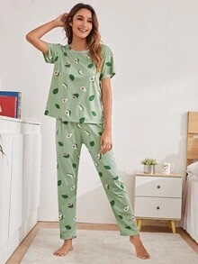 طقم بيجامة بطباعة فواكه متكررة مع غطاء للعين