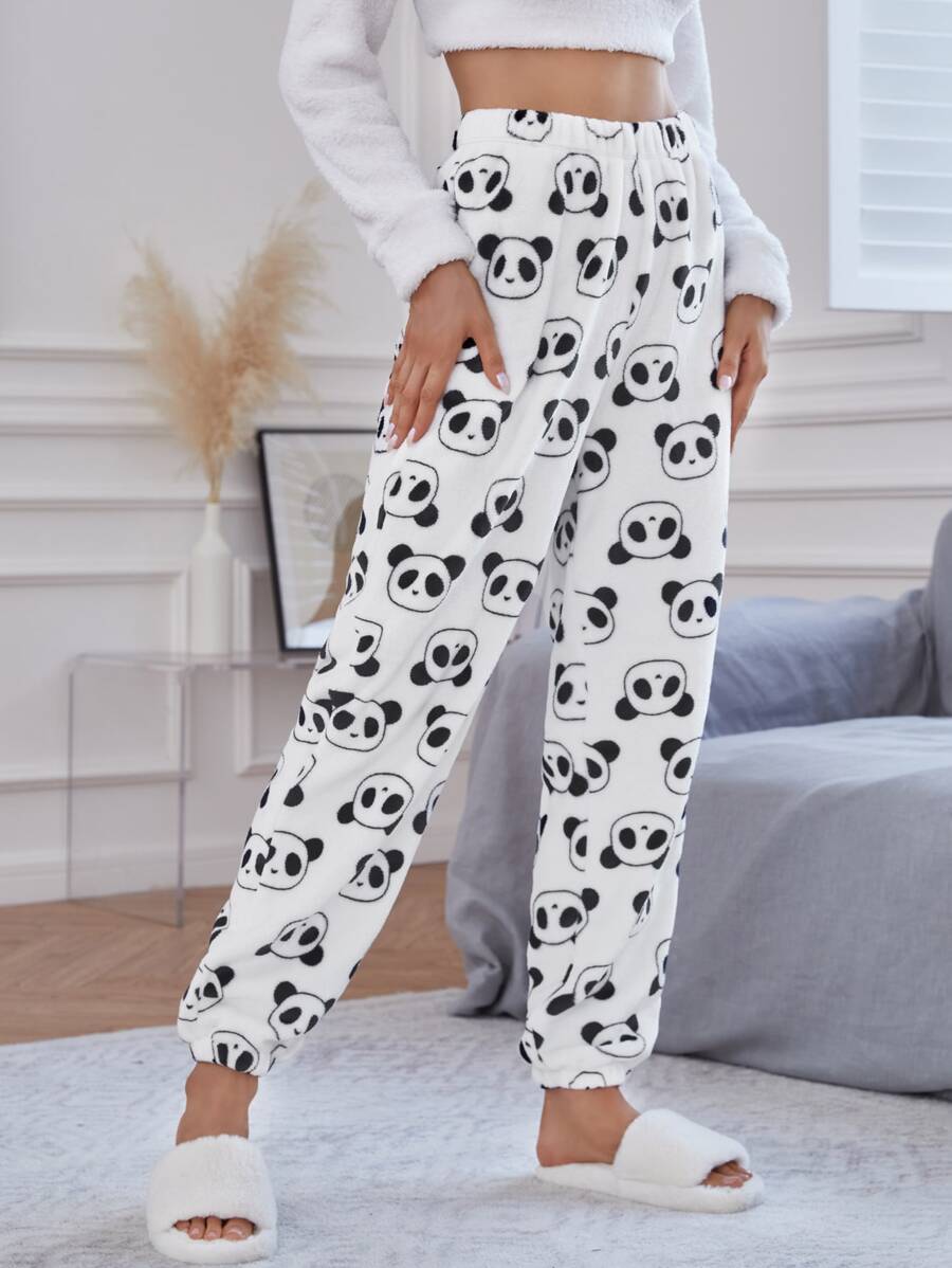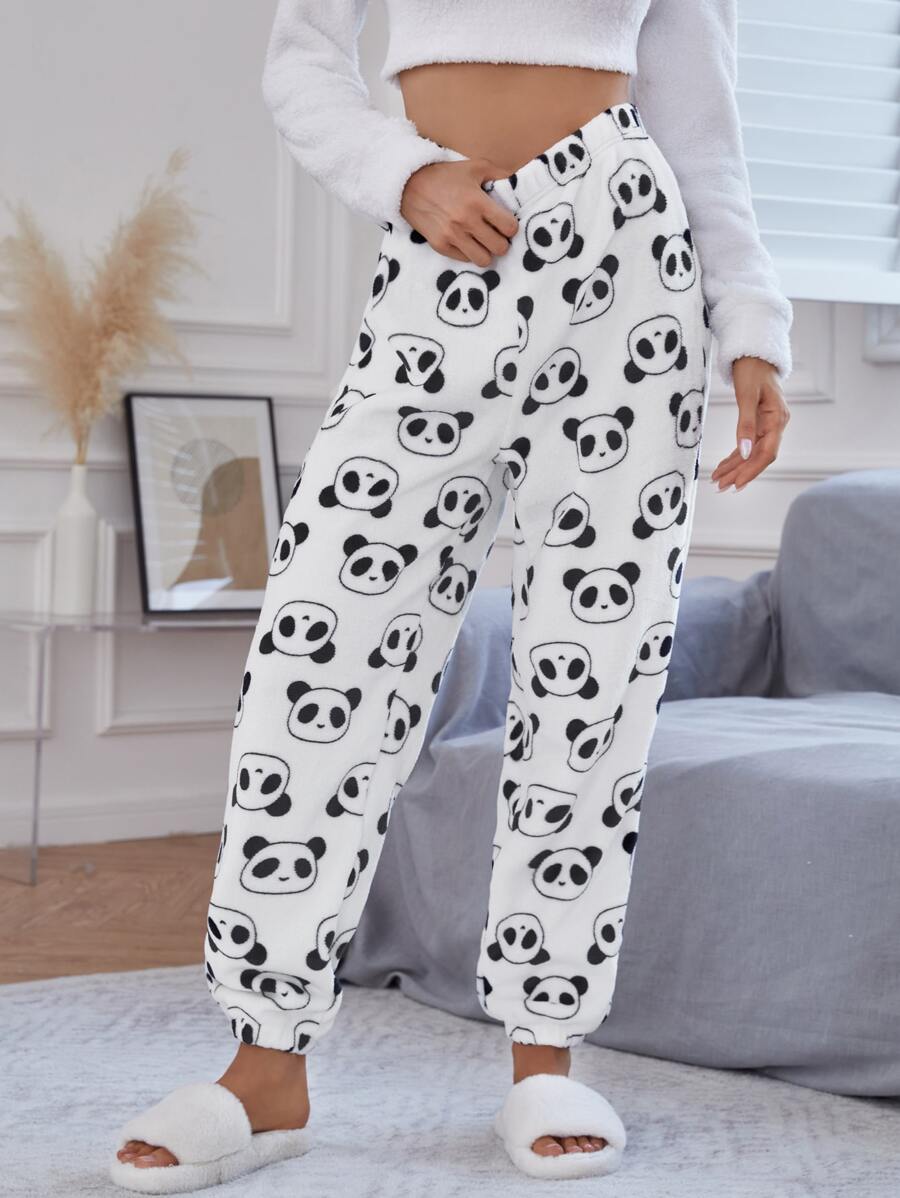 بنطلون فانيلا فضفاض مطبوع بنقشة الباندا للخريف والشتاء، مريح