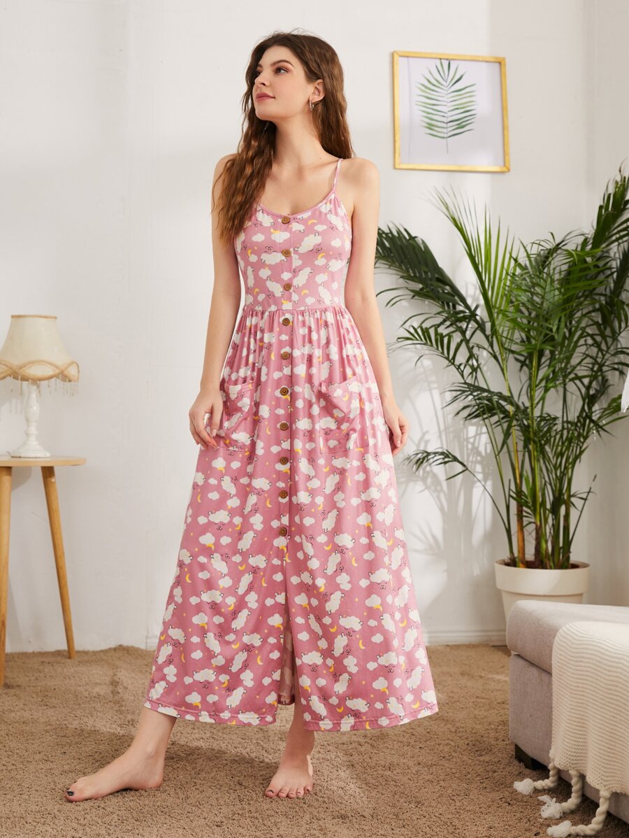 فستان نوم سهل الإرتداء بجباعة خروف متكررة