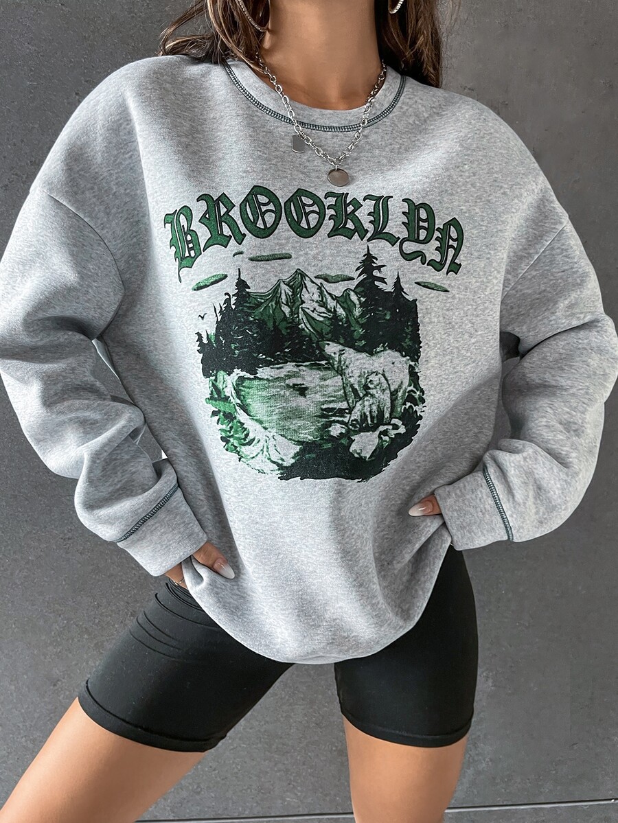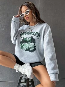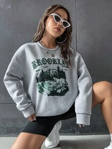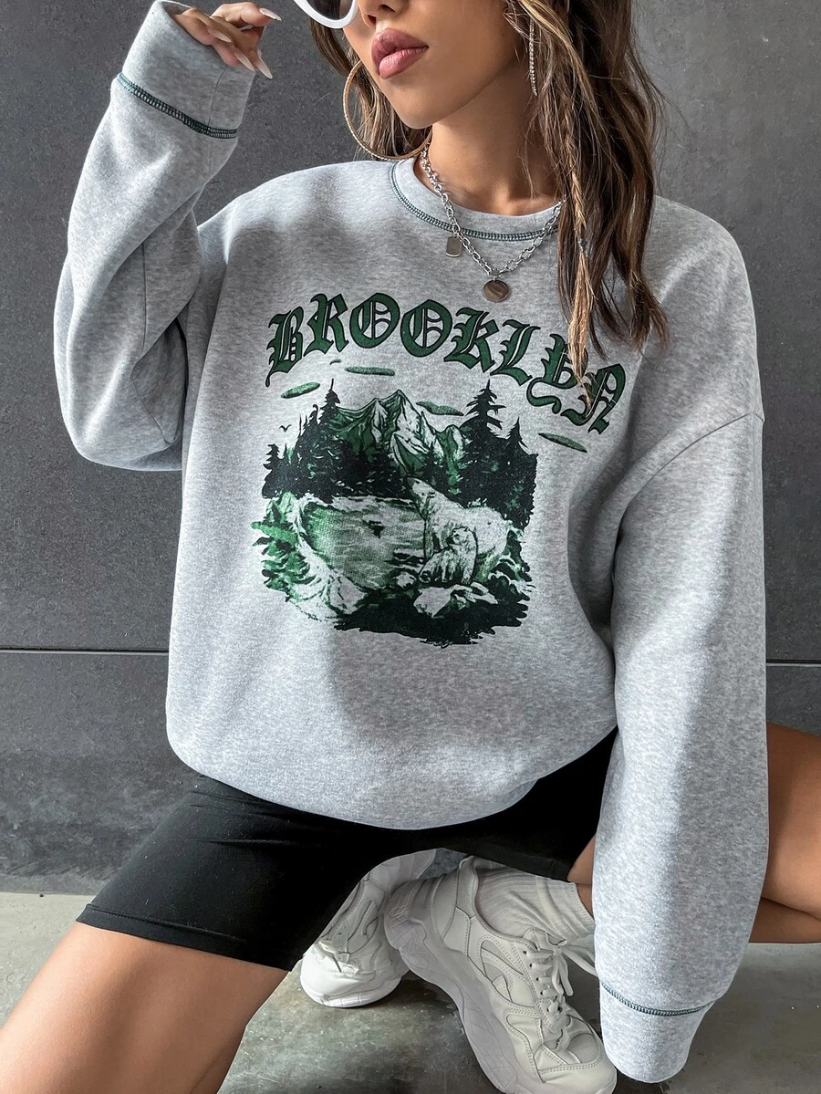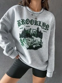 بلوفر بجرافيك حيوان وعبارة منخفض الاكتاف