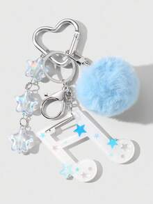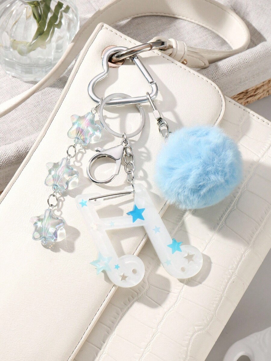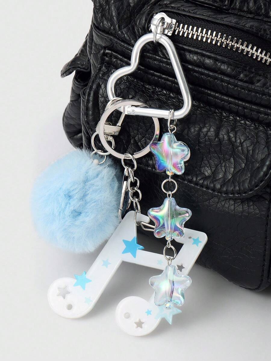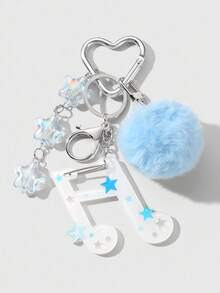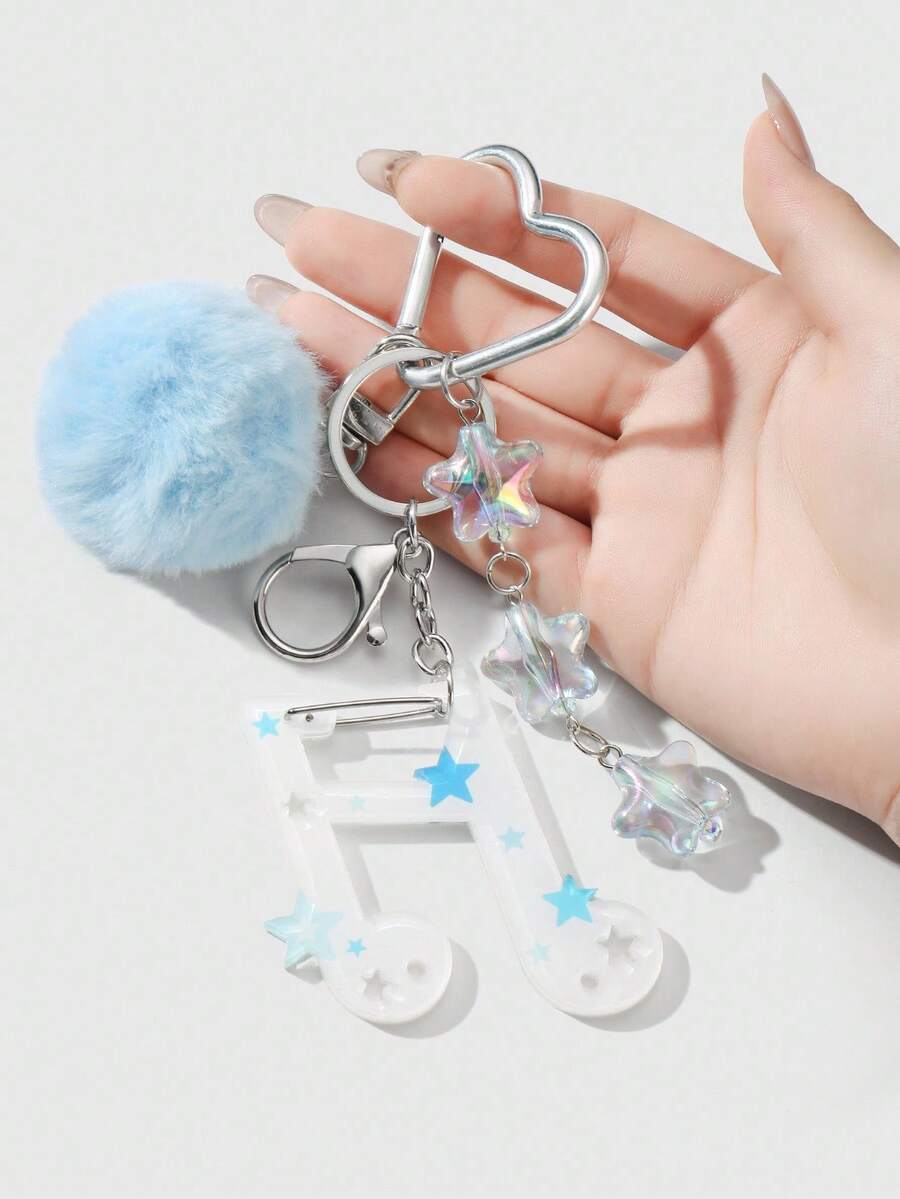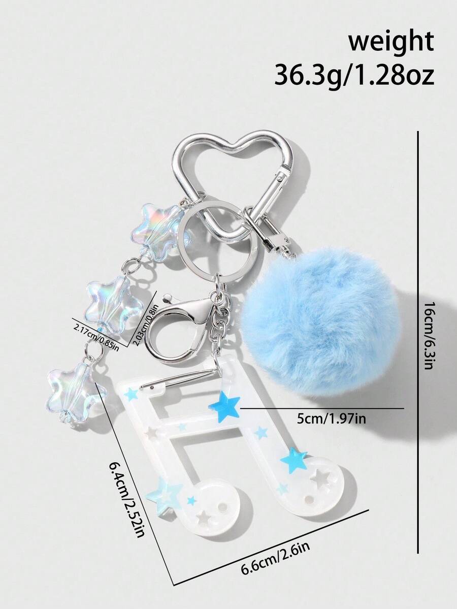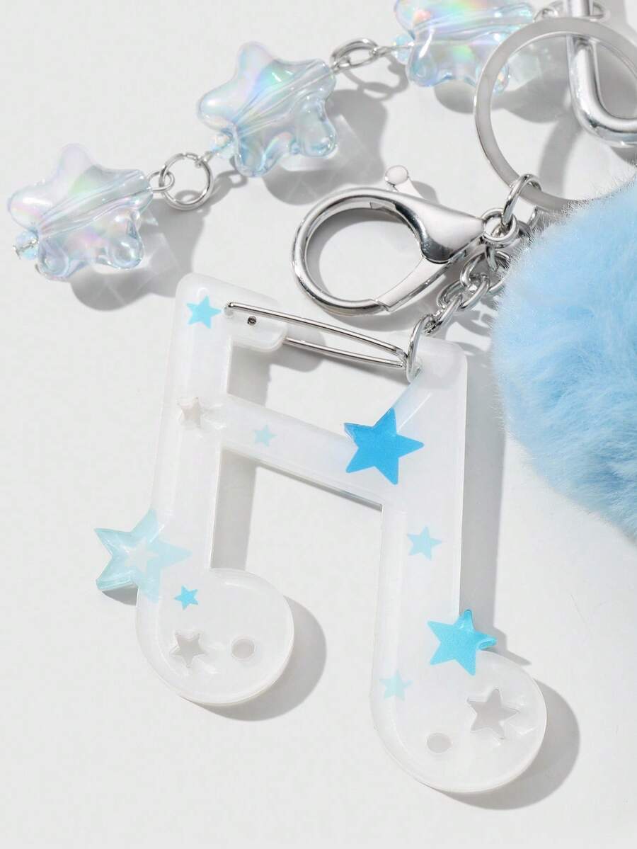 Anime 1 قطعة، بسيطة، كرة زغبية زرقاء عالية الجودة، نجمة أكريليك وملاحظة موسيقية DIY سلسلة مفاتيح وتعليقة حقيبة، مناسبة للنساء، للاستخدام اليومي أو كهدية