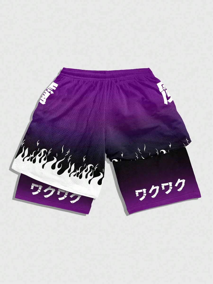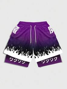 Anime شورت رجالي كاجوال فضفاض بخصر رباط قابل للتعديل