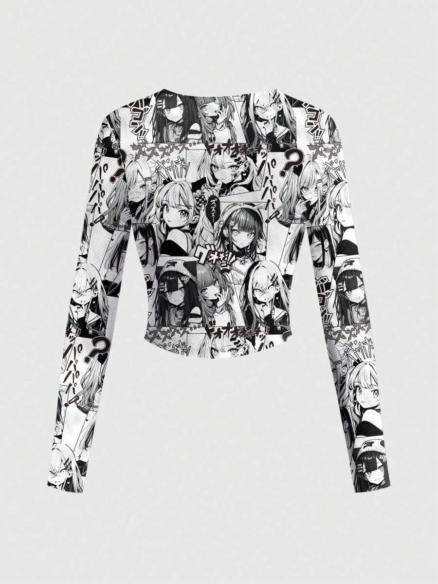 Anime قميص شفاف طويل الأكمام بتصميم مثير للنساء بطابع مدرسي مظلم وعصري وفينتاج