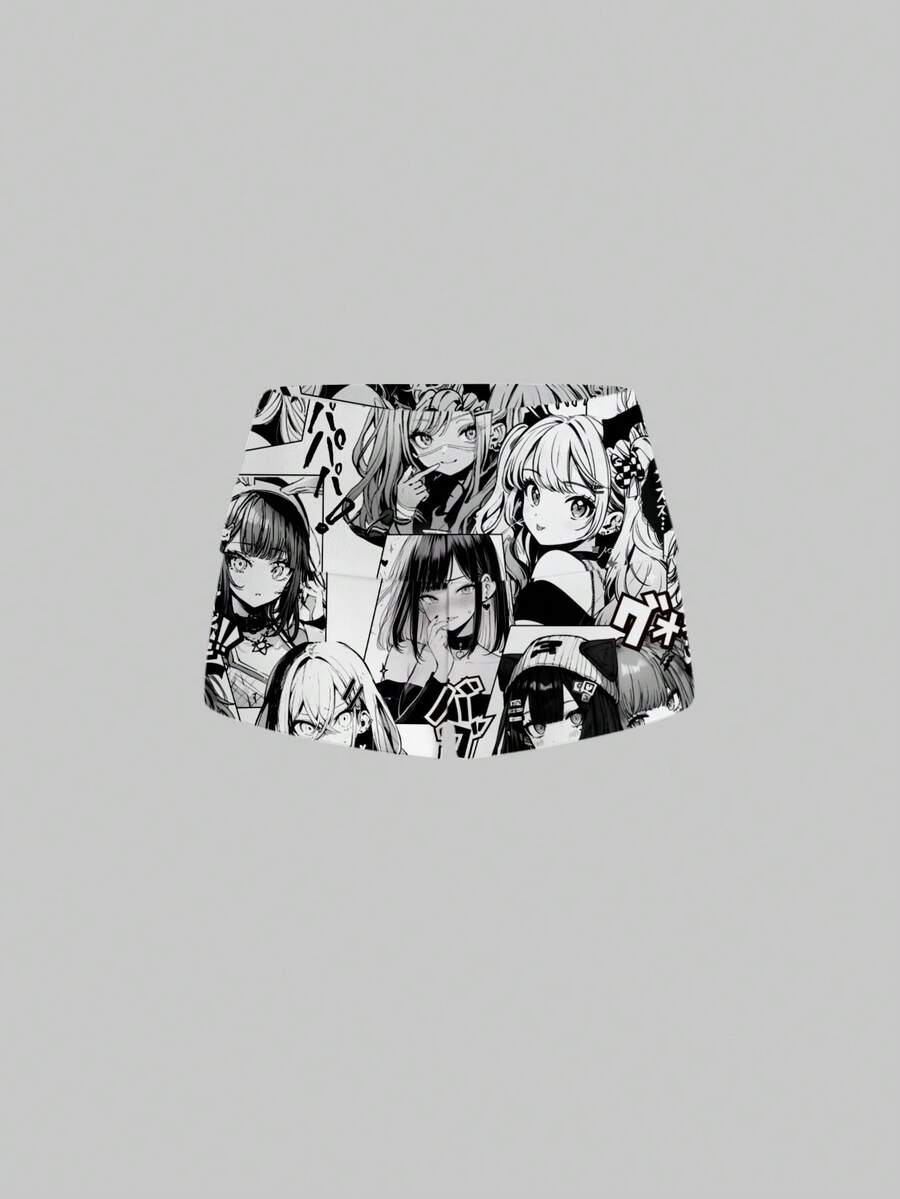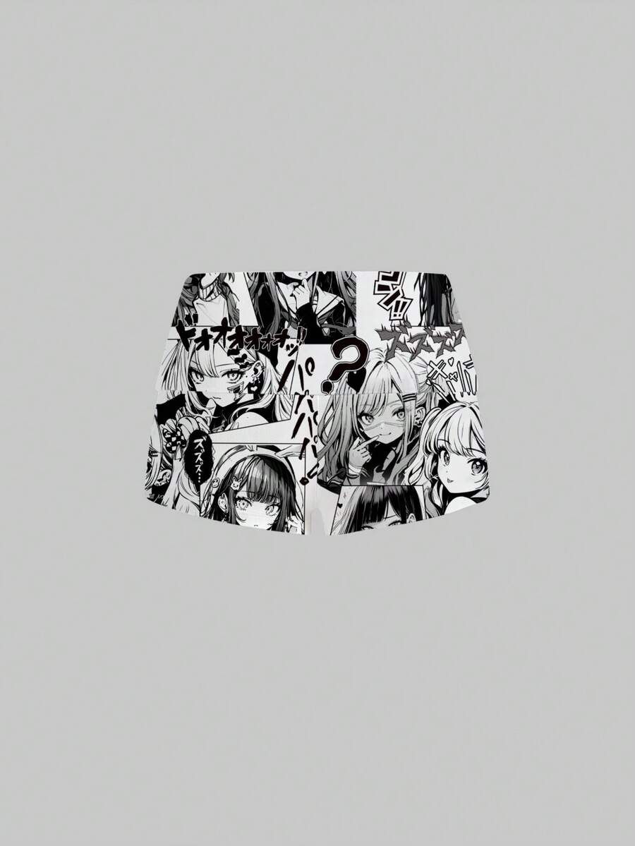 Anime شورتات قصيرة منخفضة الخصر بطبقات للنساء بتصميم أنمي داكن وجذاب للمهووسين