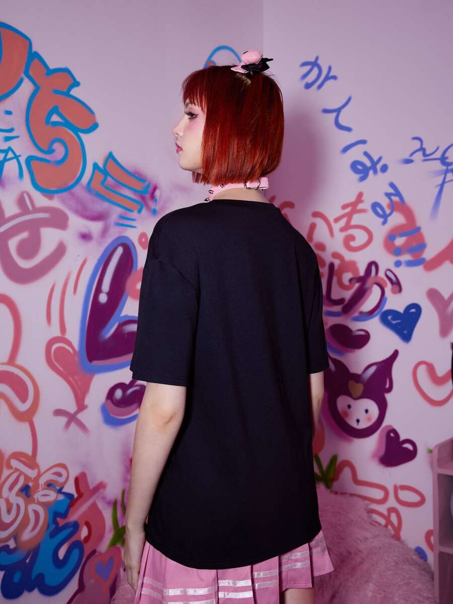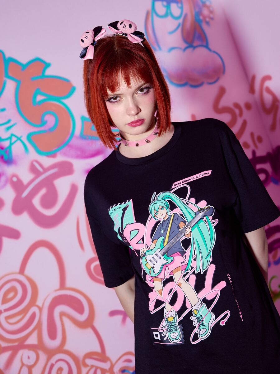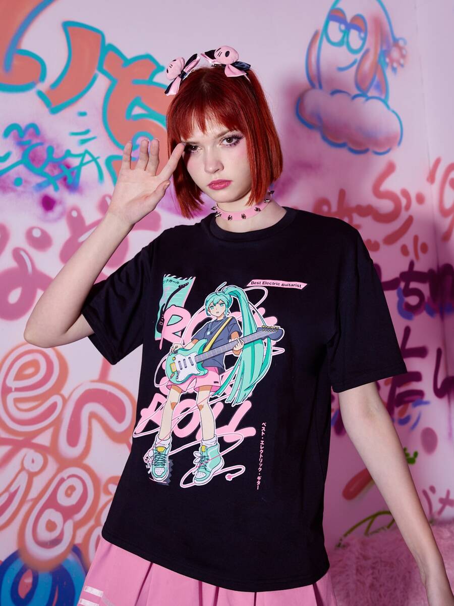 Anime تي شيرت منخفض الاكتاف طباعة شكل