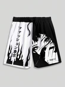 Anime شورتات سلة البسكيت المطبوع عليها نقوش الأنمي، مصنوعة من نسيج مناسب للربيع والصيف لارتداء المدرسة