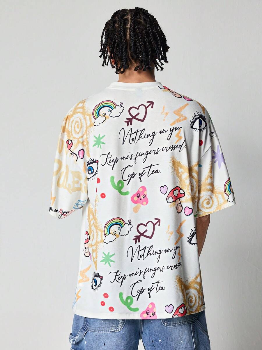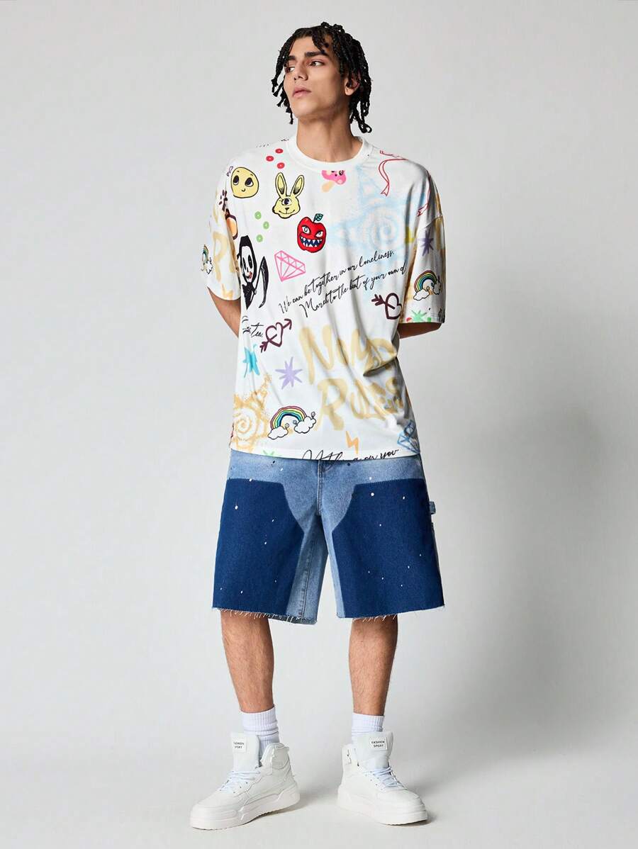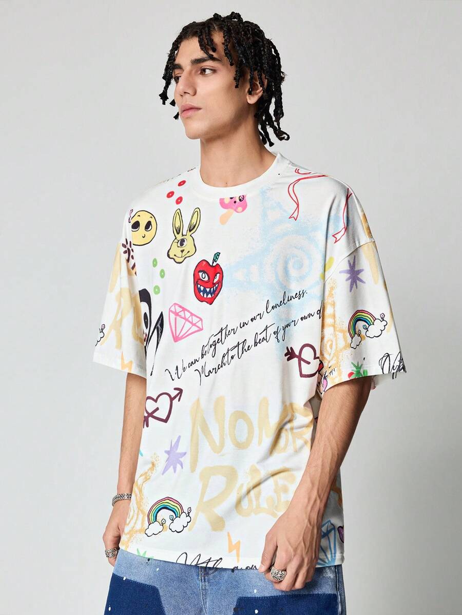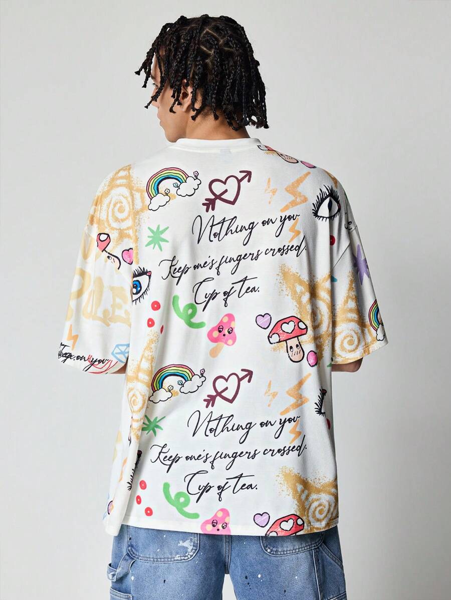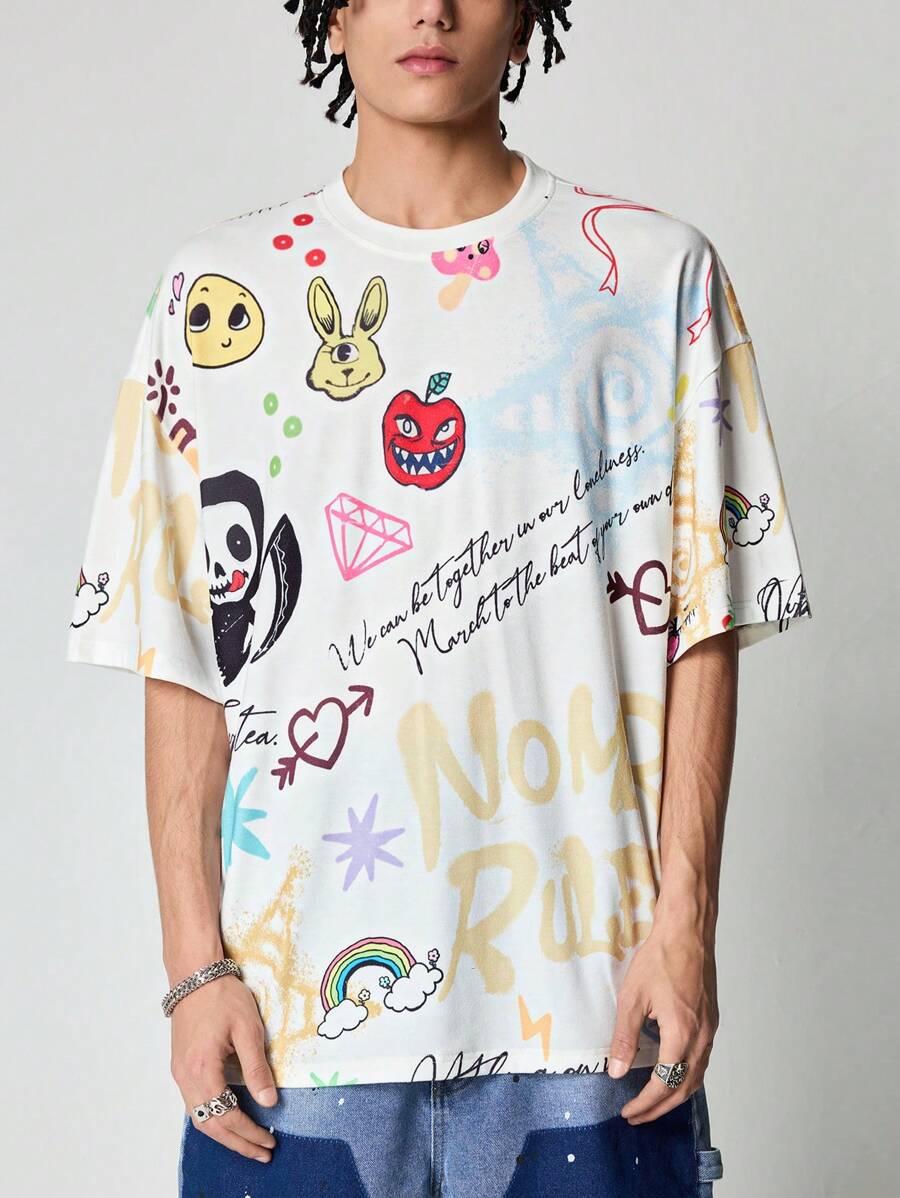 Anime تي شيرت كاجوال قصير الأكمام بطباعة حرفية لرجال الرقبة المستديرة