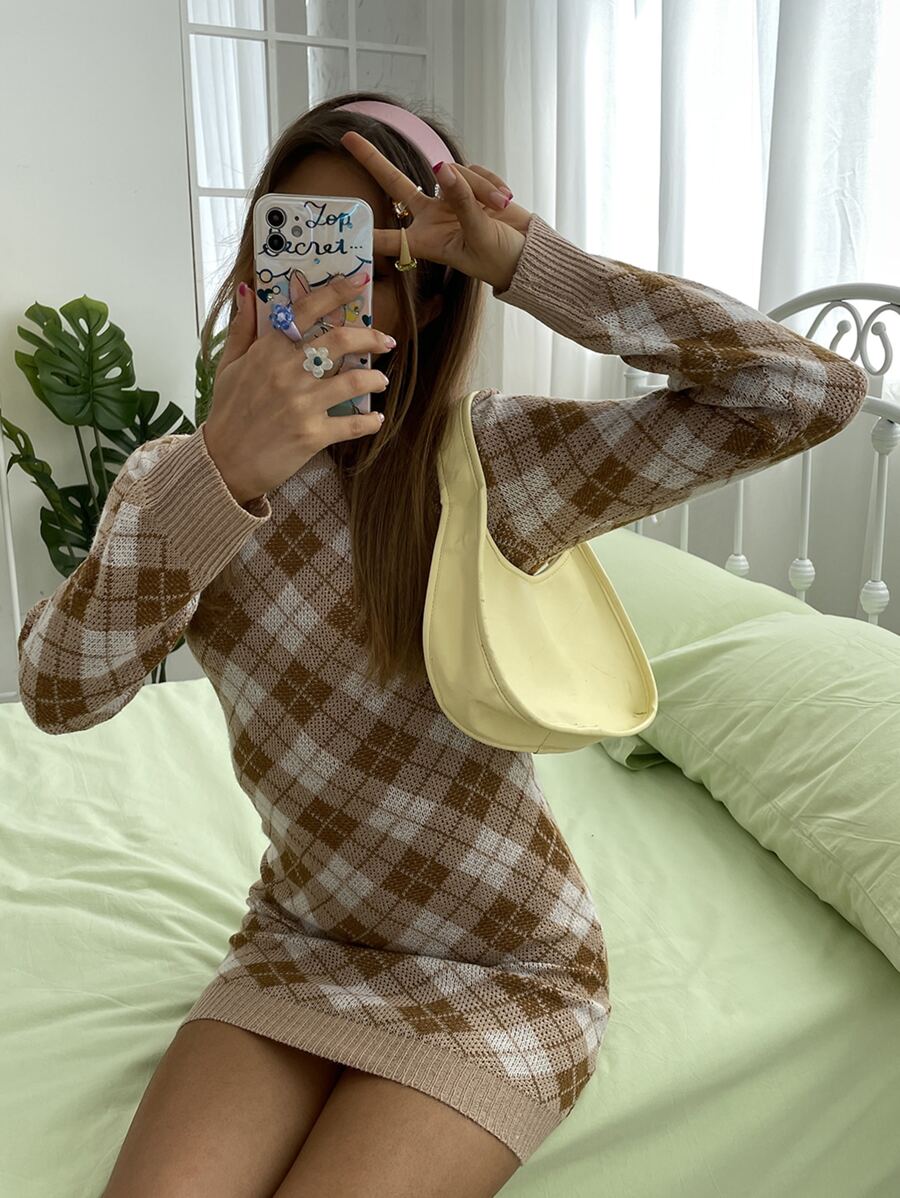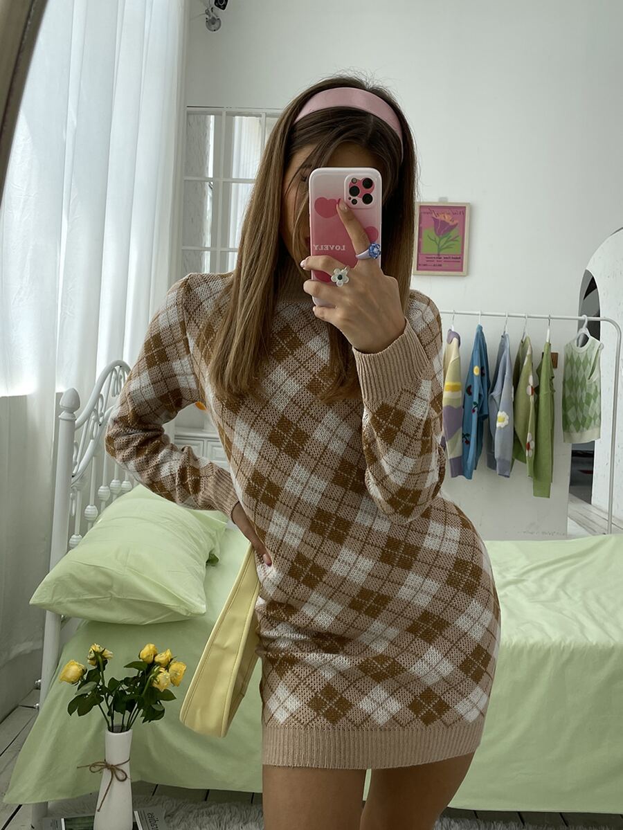 فستان صوف محبوك بياقة عالي بنمط بلوري
