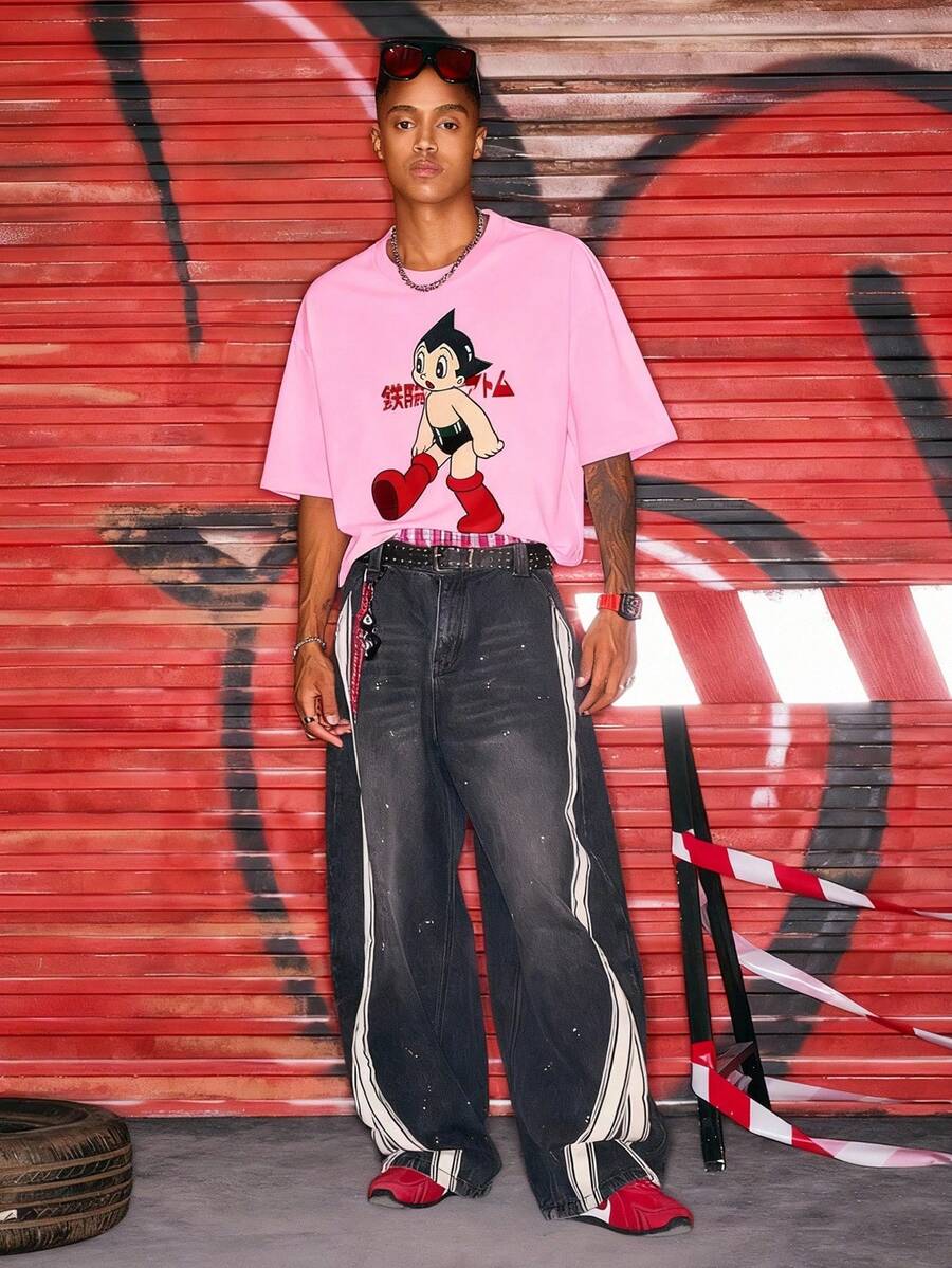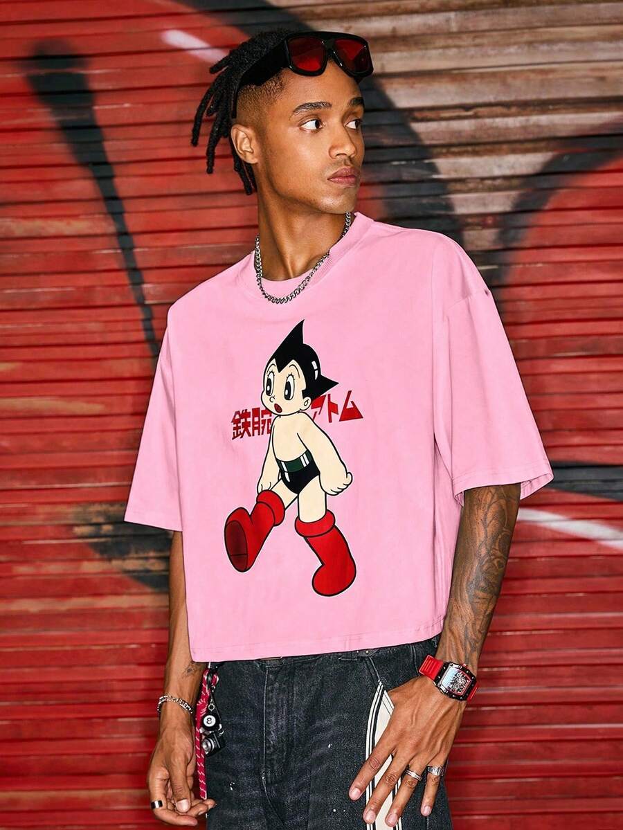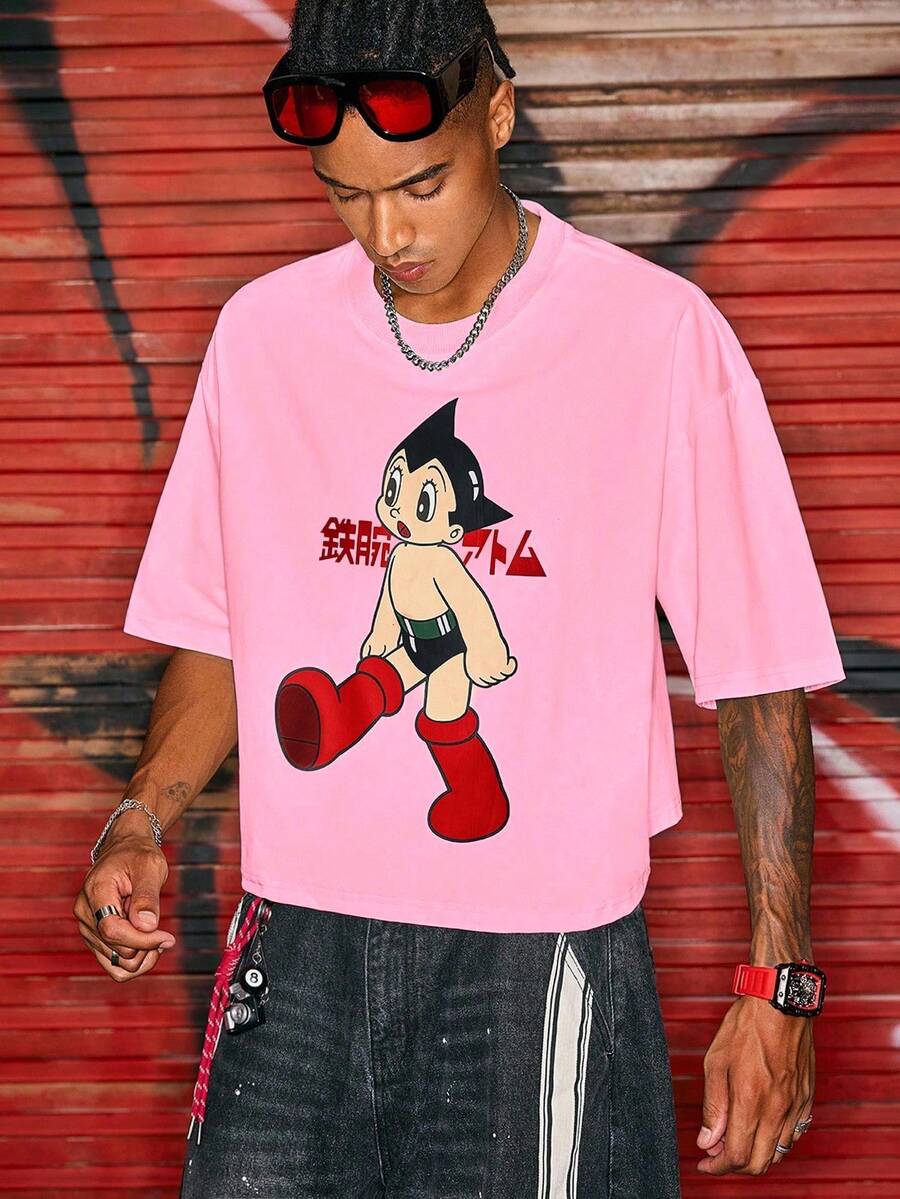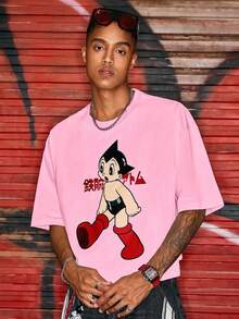Astro Boy X ROMWE تي شيرت رجالي فضفاض بطبعة كرتونية صيفي