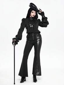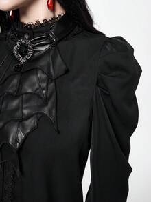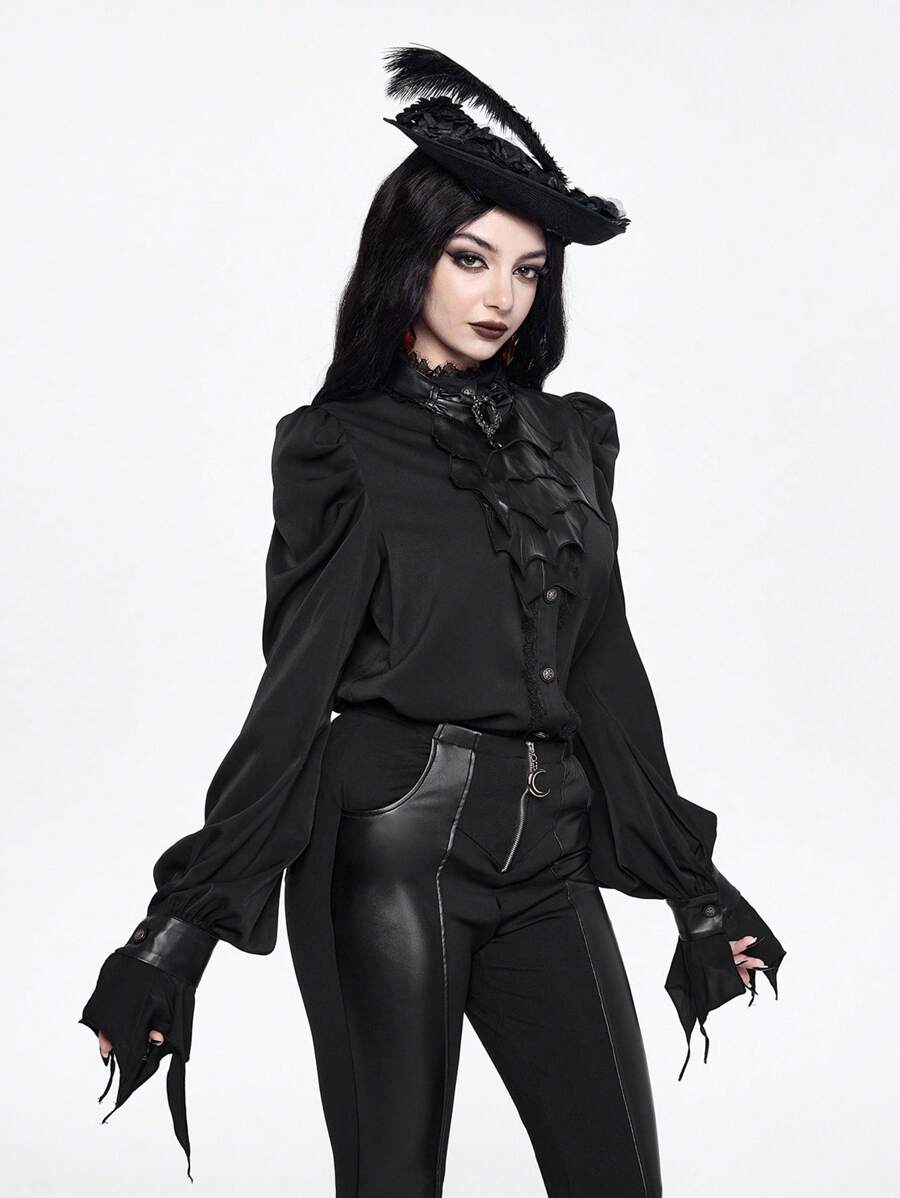 EDITION قميص نسائي أسود فضفاض بياقة على شكل خفاش من البولي يوريثان، مناسب لمناسبة عيد الهالوين