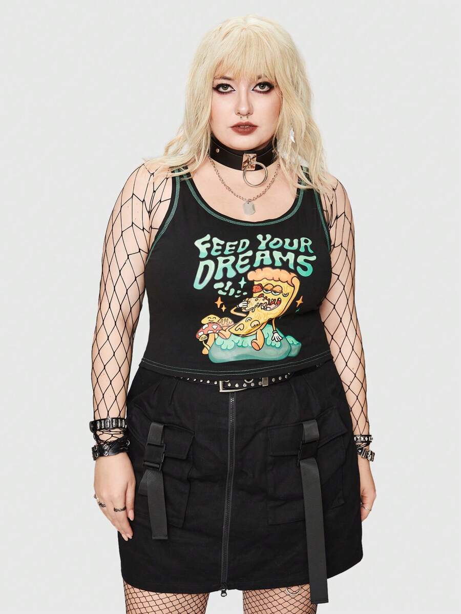 Atosha قميص بلا أكمام برسوم الكرتون والحروف للبالغين