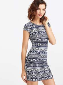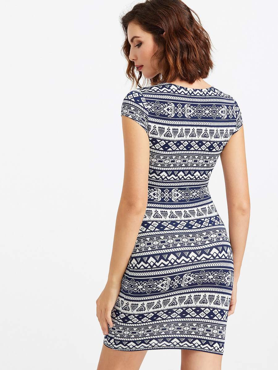 فستان بشكل ملائم للجسم مع طباعة أزتكي
