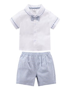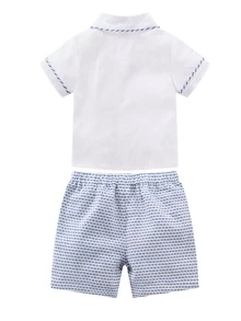 سروال قصير مع قميص بياقة بقوس للاولاد للأطفال