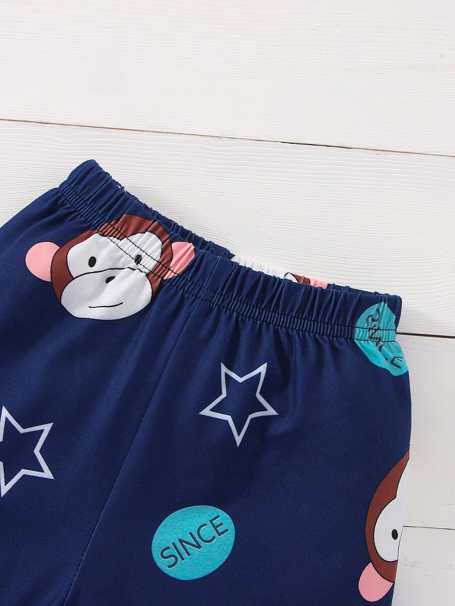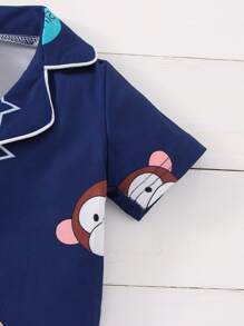 قميص بشريط متباين وطباعة قرد مع شورت