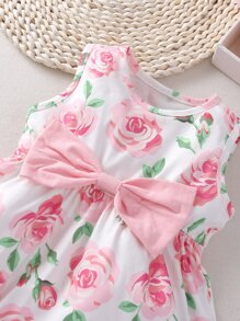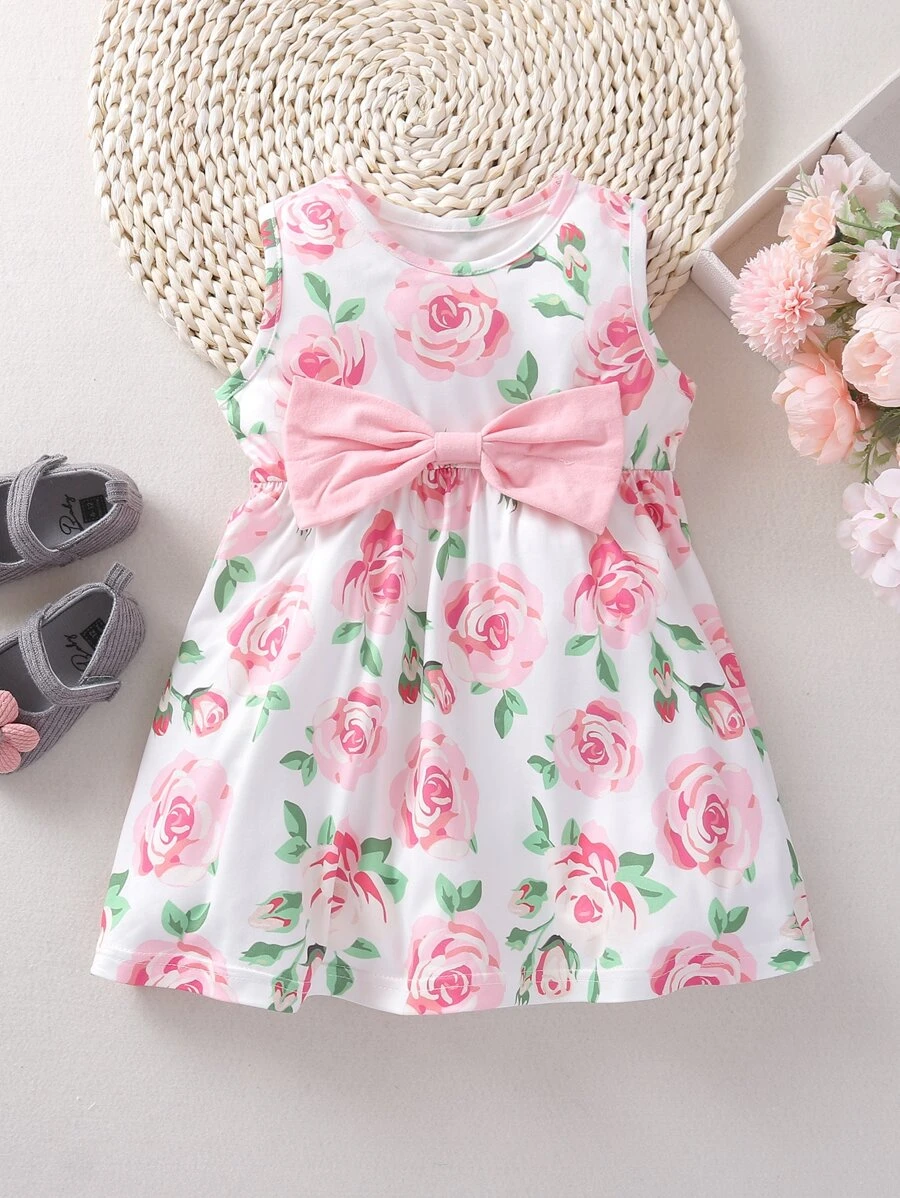 فستان مزهر شامل بربطة قوس امامي كبير للبنات الرضع
