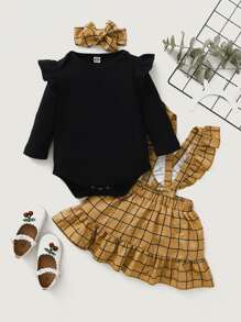 تنورة بحمالات مكشكش شبكي شبكي مع بدسويت وعصابة راس للبنات الرضع