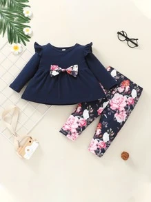 لباس علوي بيبي دول عقدة الفراشة أمامية مع طماق للبنات الاطفال