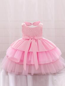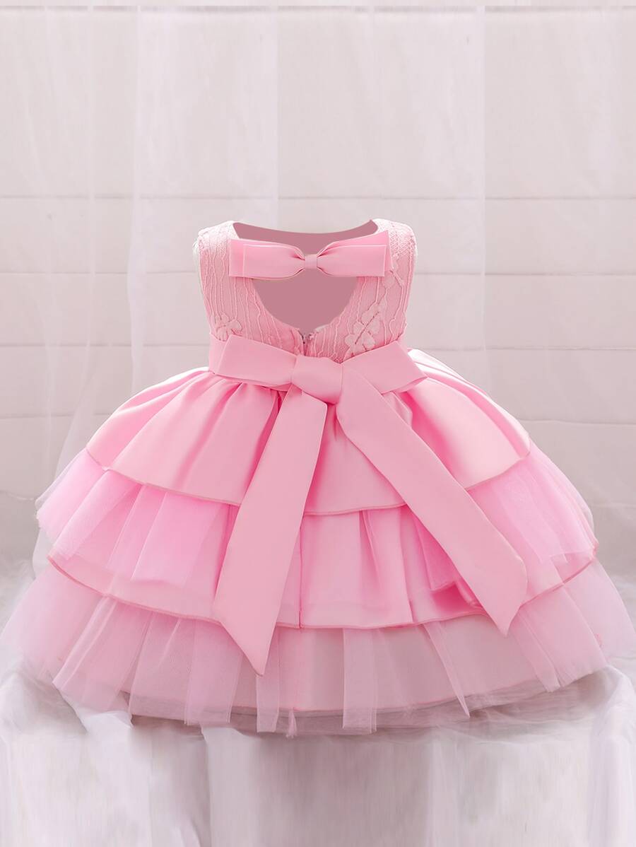 فستان حفلة بصدر بربطة خلفي وبقوس امامي شبكي متباين للبنات الاطفال