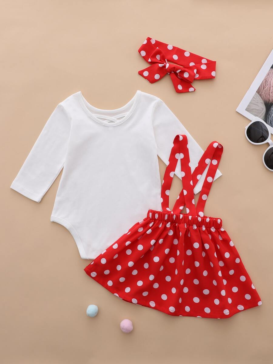 تنورة بحمالات بنقاط بولكا مع بدسويت متقاطع خلفي مع عصابة رأس للبنات الرضع
