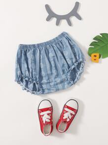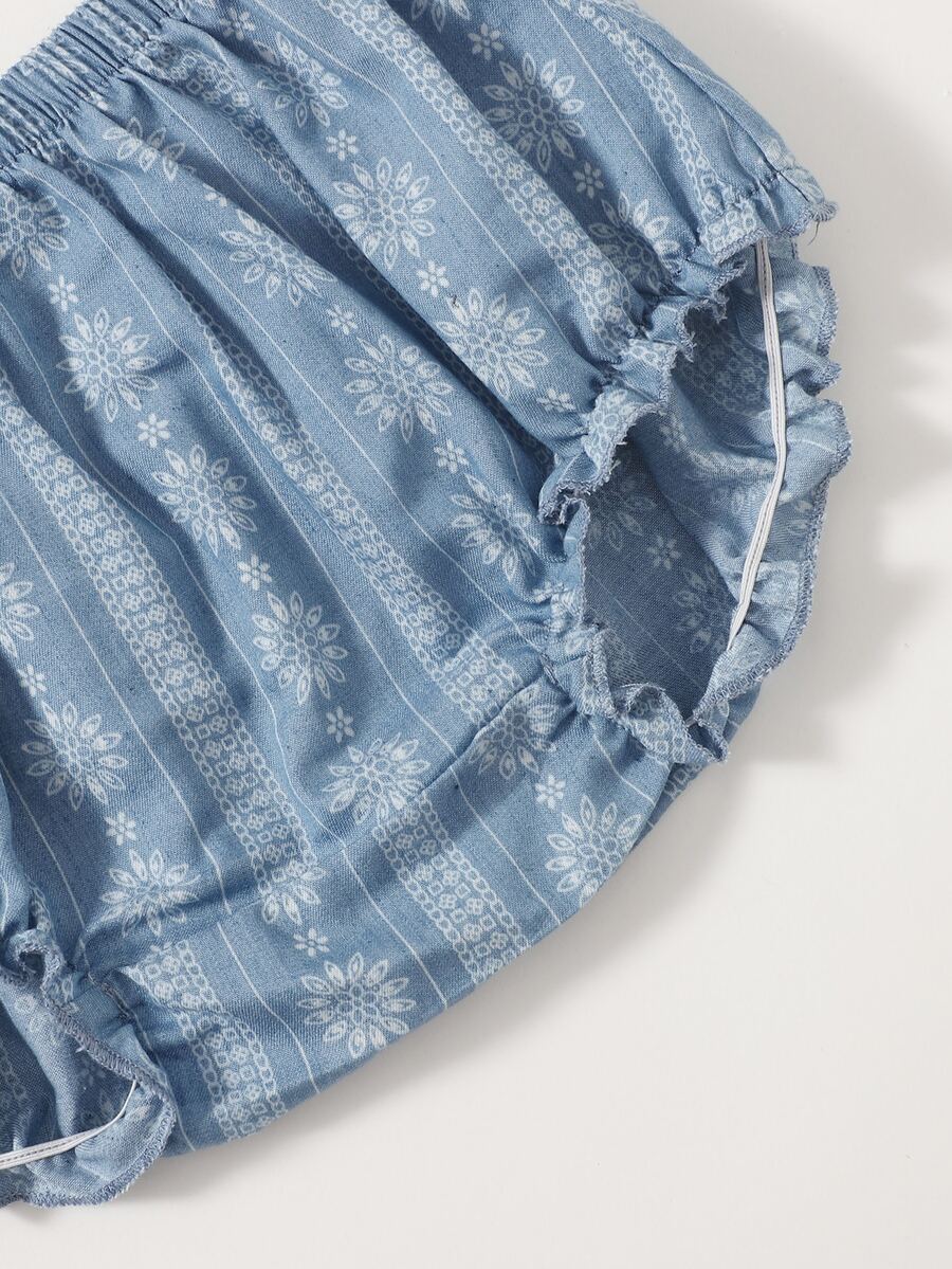 شورت دينيم مقلم بهدب بطباعة زهر للبنات للاطفال
