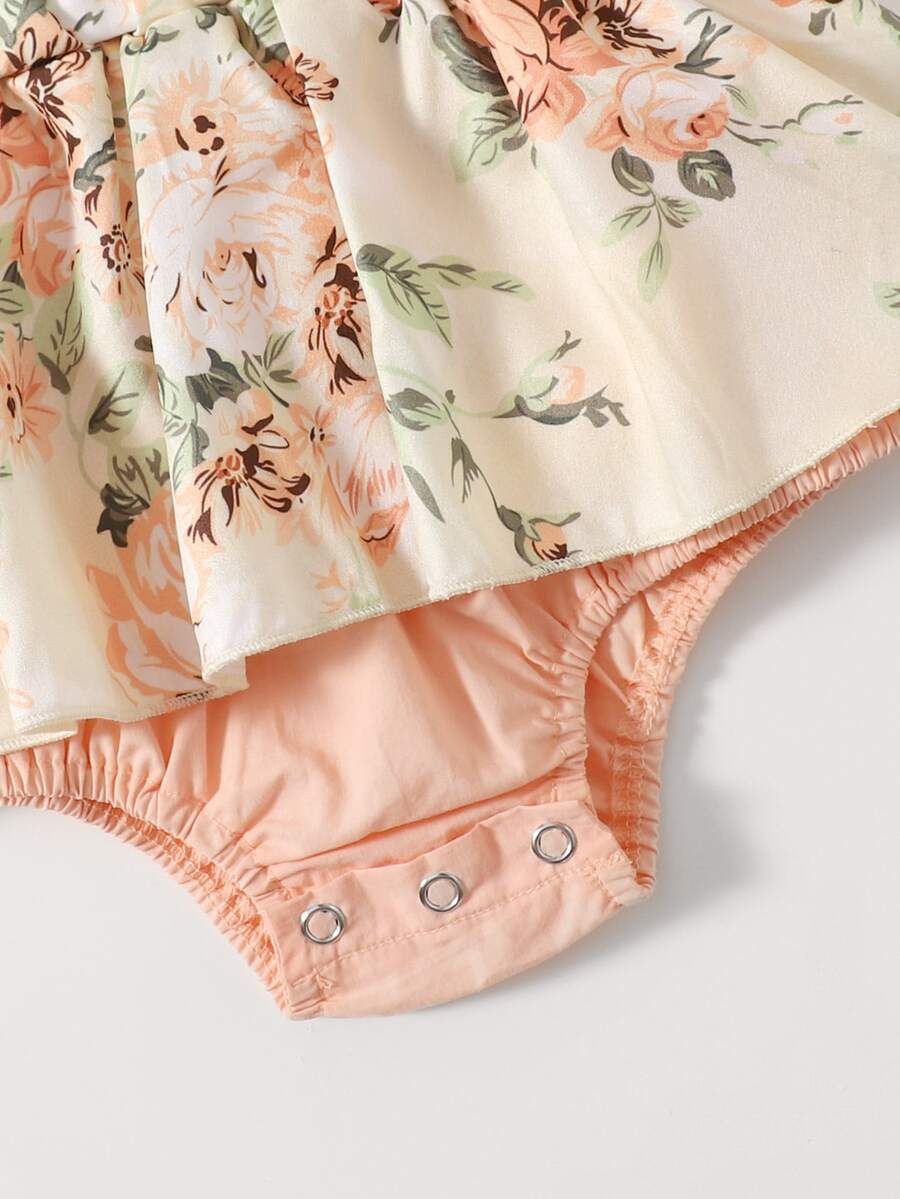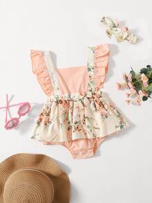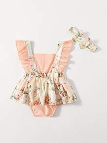 فستان بدسويت مدموج مقلم بكشكش مزهر مع عصابة راس للبنات للأطفال