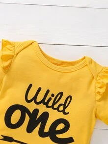 بنطلون زهرة دوار الشمس مع بدسويت مكشكش بجرافيك عبارة مع عصابة راس للبنات الأطفال