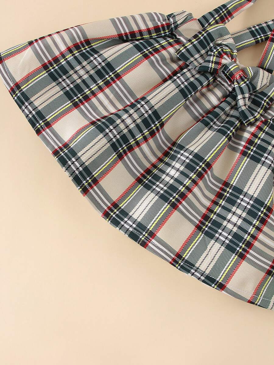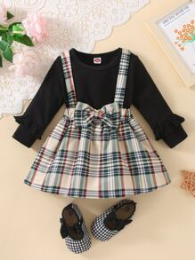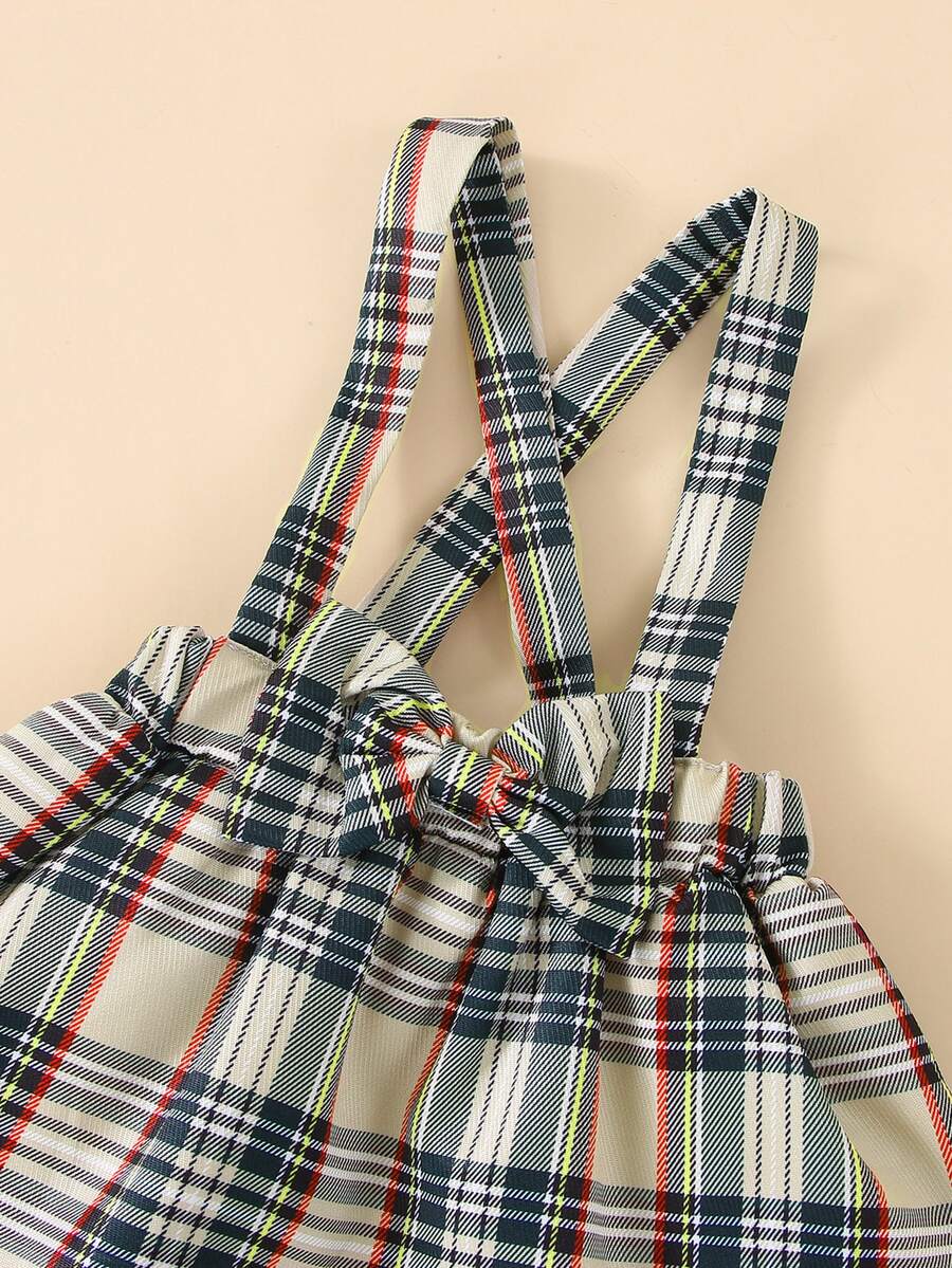 تنورة بينافور بفيونكة مربع النقش مع بدسويت محبوك مضلع للبنات الرضع