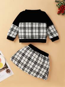 تنورة مع قميص ثقيل من التويد مربع النقش للبنات الرضع
