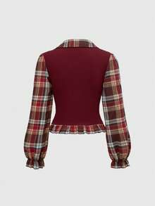 Goth قميص/بلوزة نسائية بأكمام طويلة، تصميم رجعي جوتي مربعات ملونة، مناسب للعودة إلى المدرسة