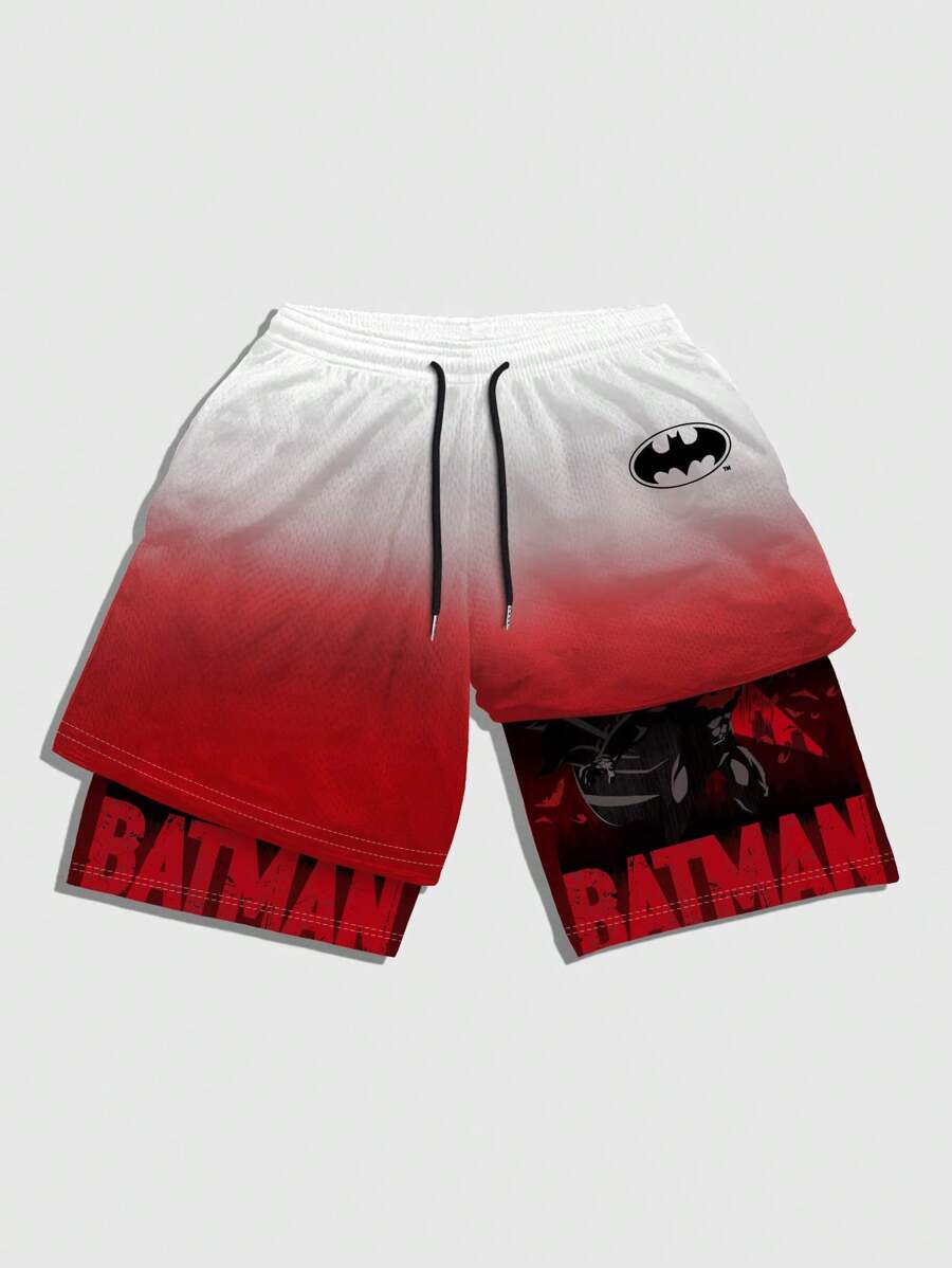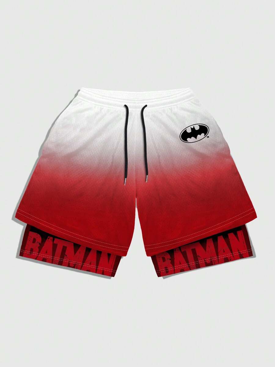 Batman X ROMWE شورتات قصيرة كاجوال بتصميم أومبير مع سحّاب، صيفي