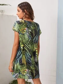 فستان بطباعة استوائي وباكمام خفاش
