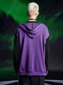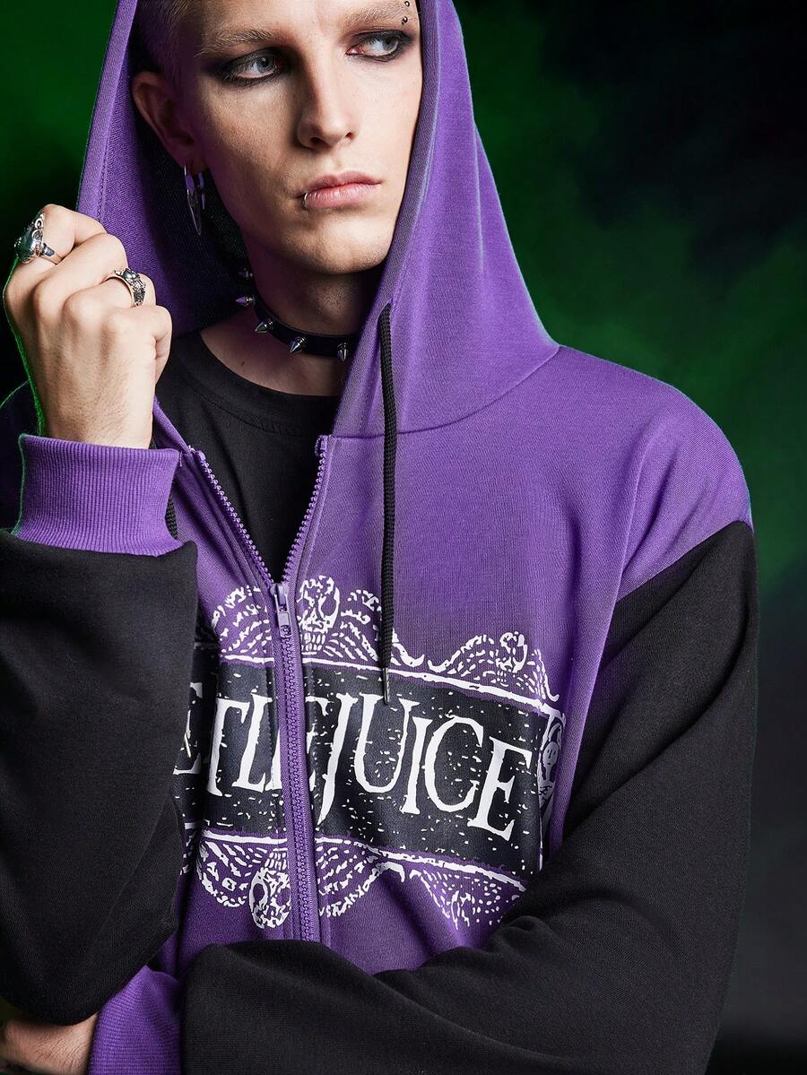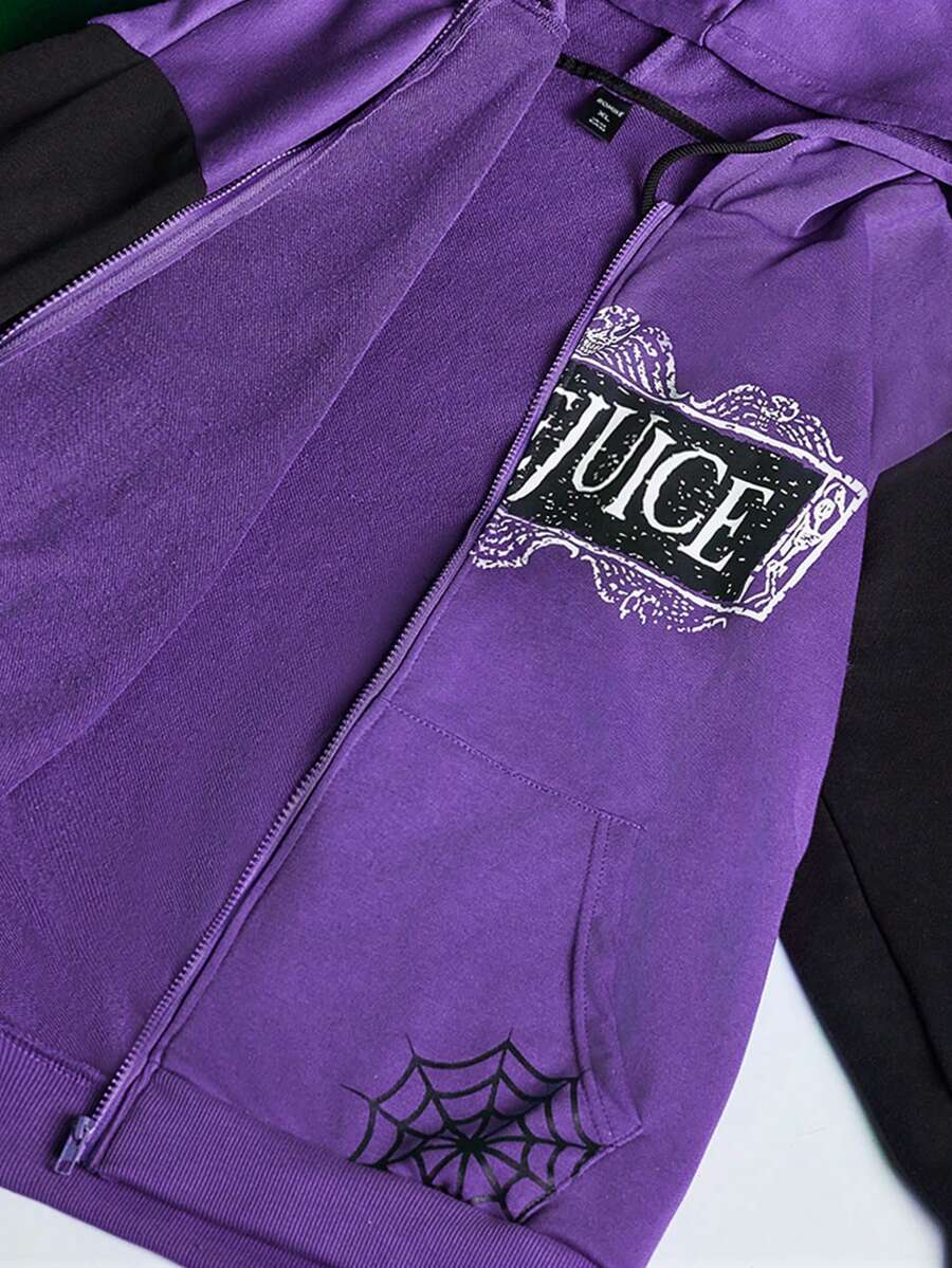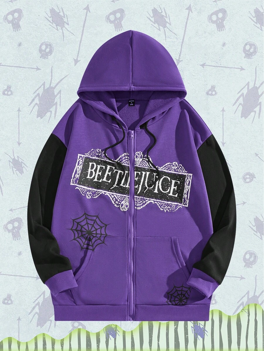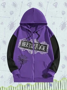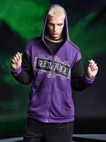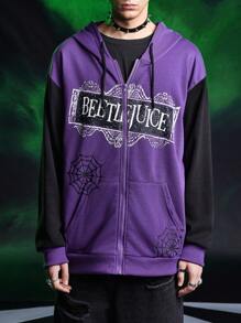 Beetlejuice | ROMWE بلوزة رياضية كاجوال بسحاب وقبعة بطباعة ألوان متباينة للرجال