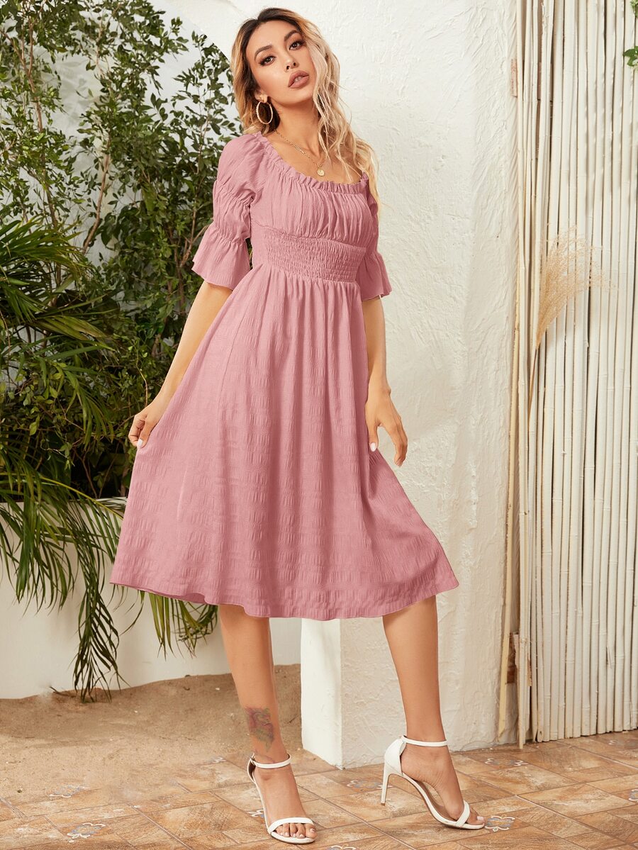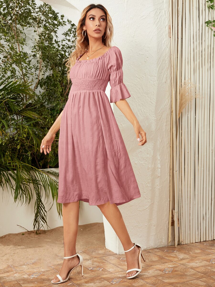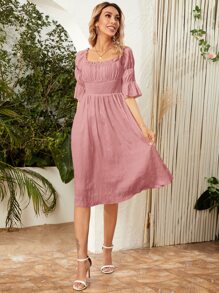 فستان وصيفة العروسة أكمام جرس طية صدر بغرز