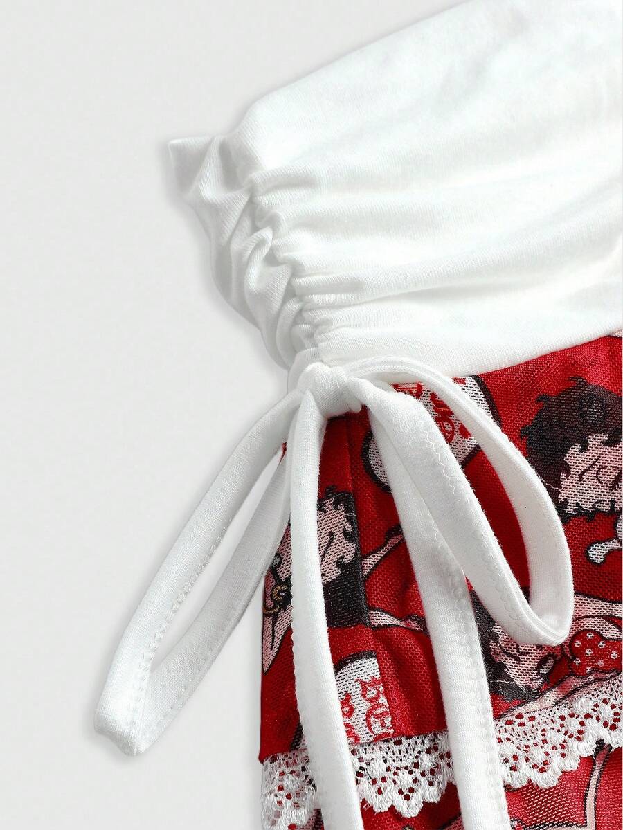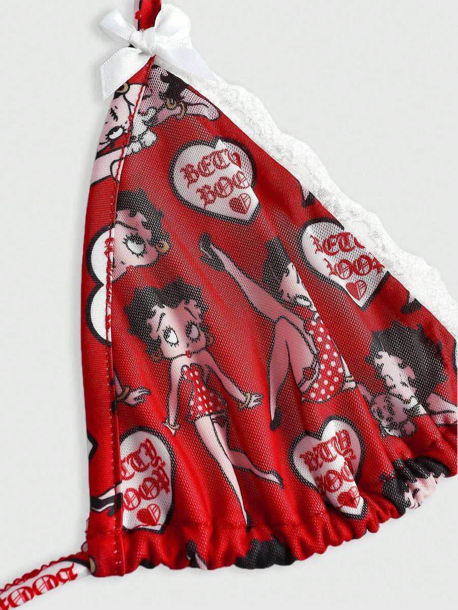 Betty Boop | ROMWE طقم قطعتين كرتوني المظهر الجرافيكي Y2K بحمالة مثيرة مثلثية الشكل وتنورة قصيرة ذات خصر عالي مطوية وخصر منخفض