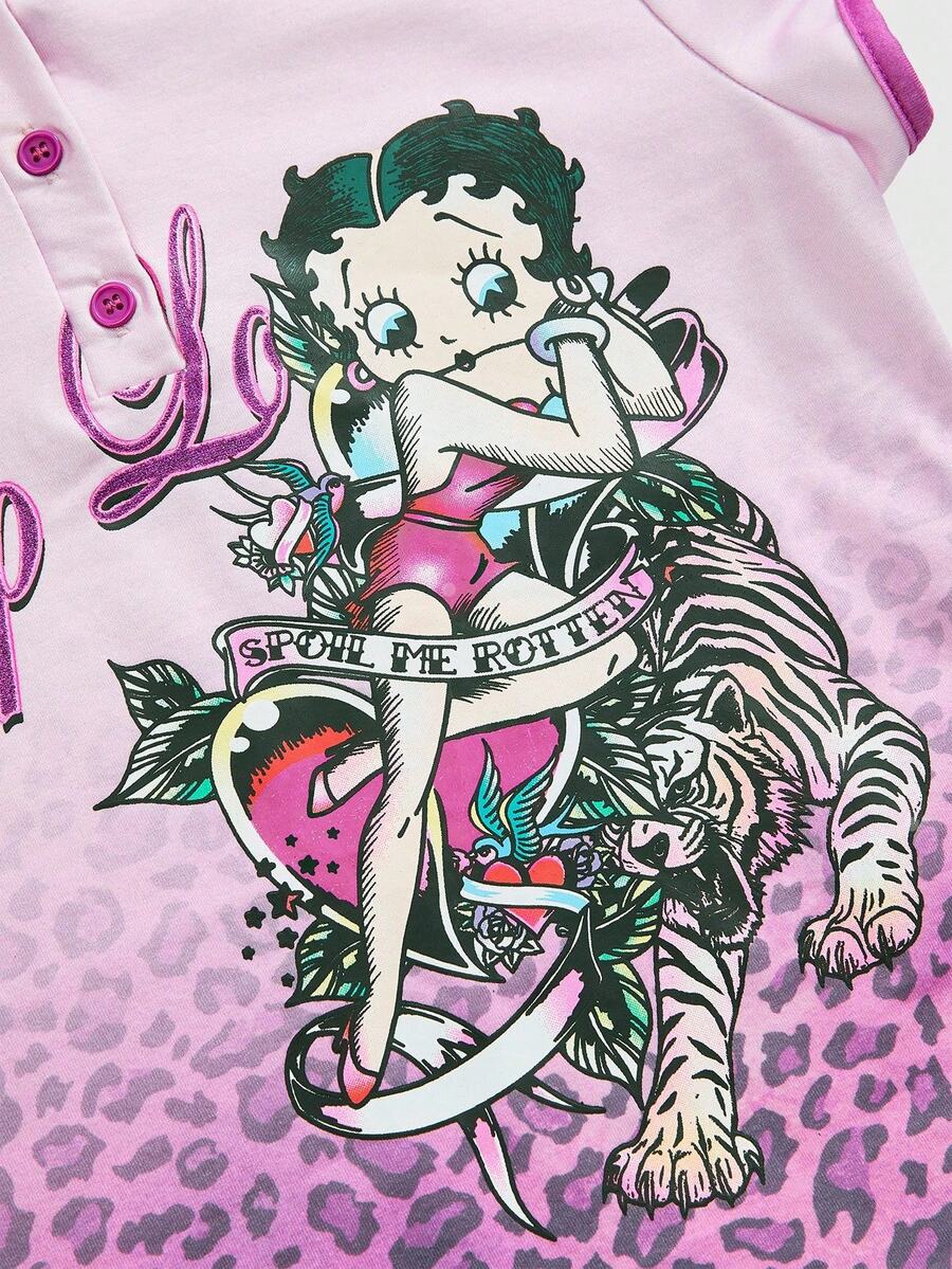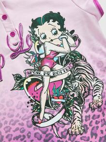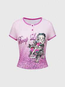 Betty Boop | ROMWE قميص بطبعة الفهد والشكل الرسومي بطراز الشارع الوردي Y2K Baddie