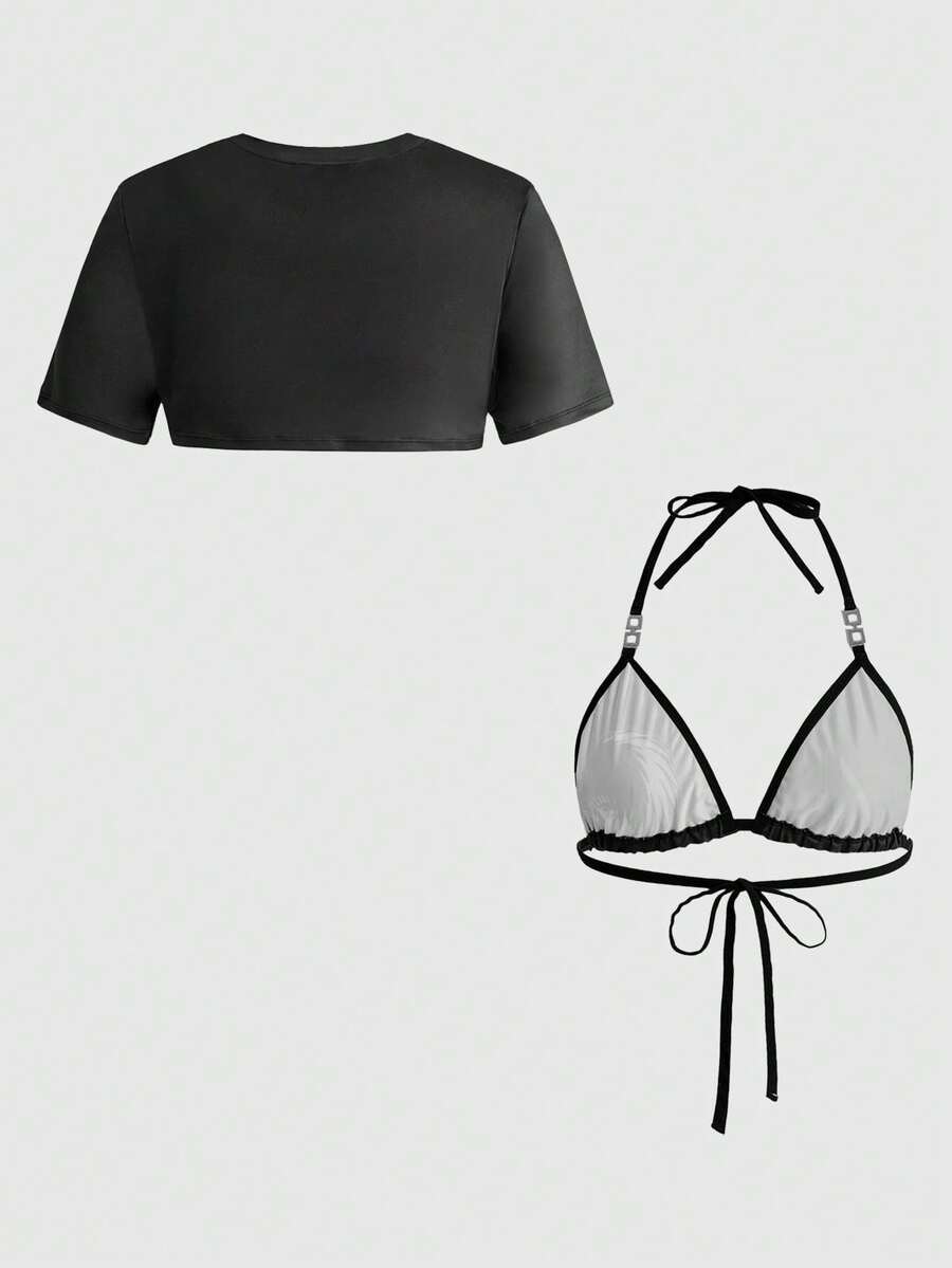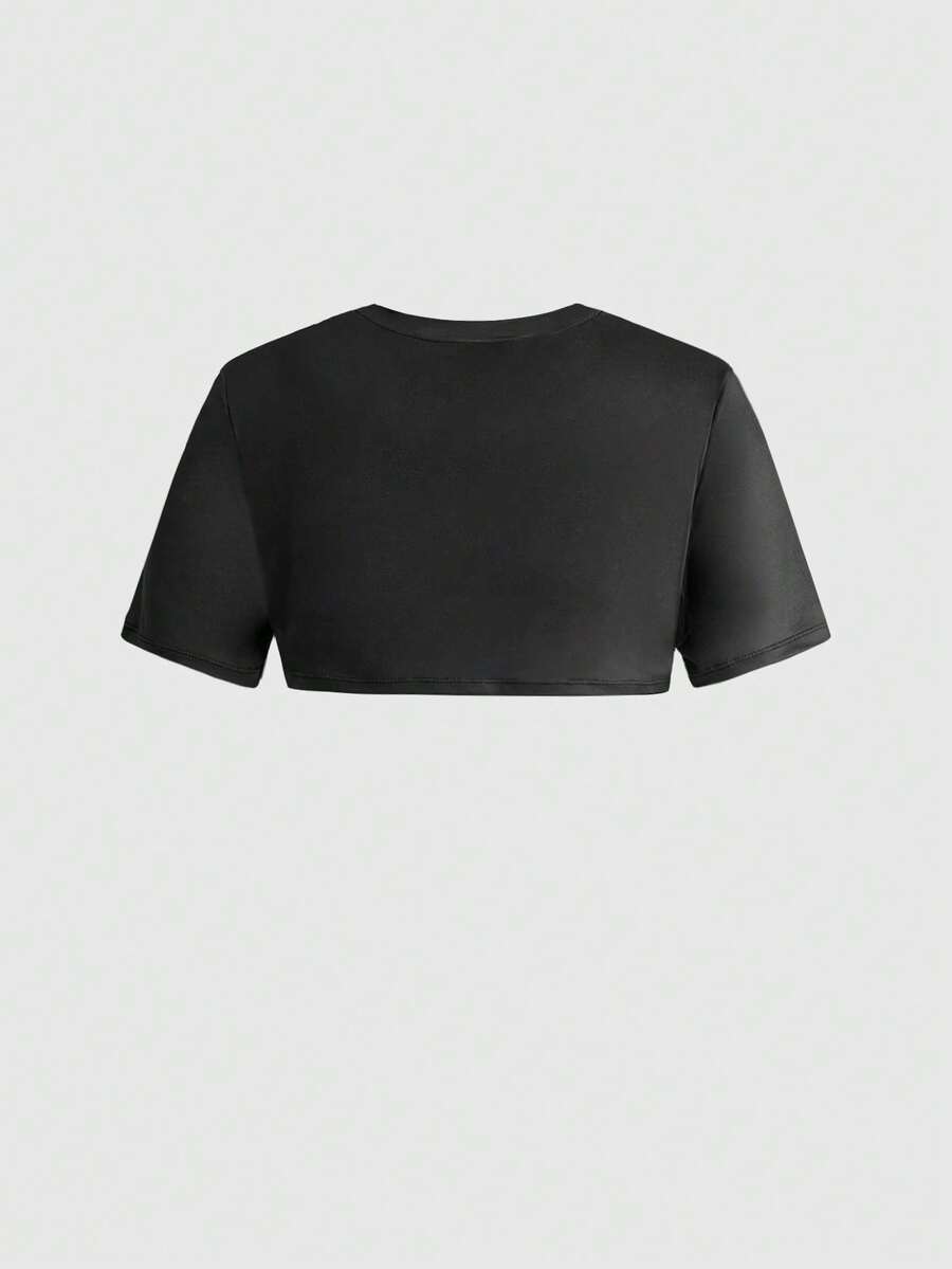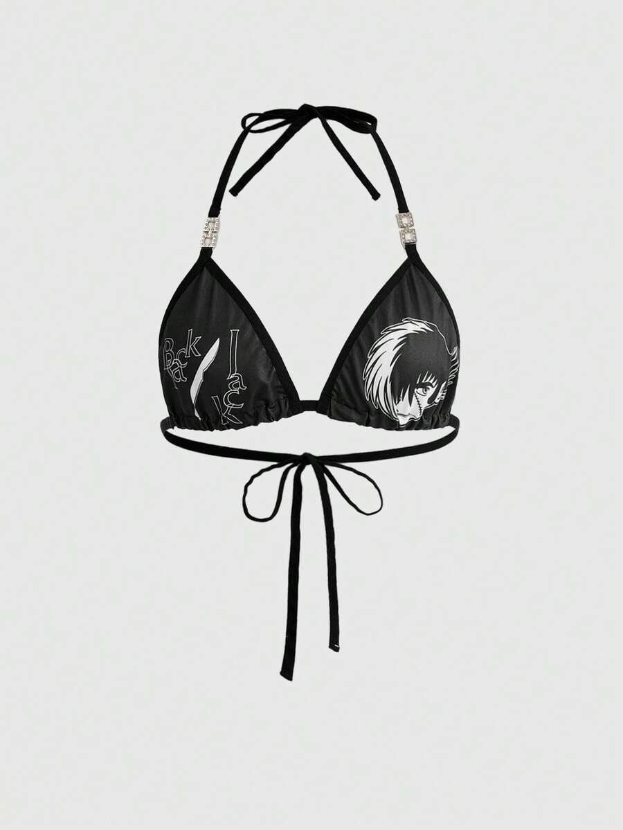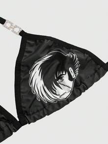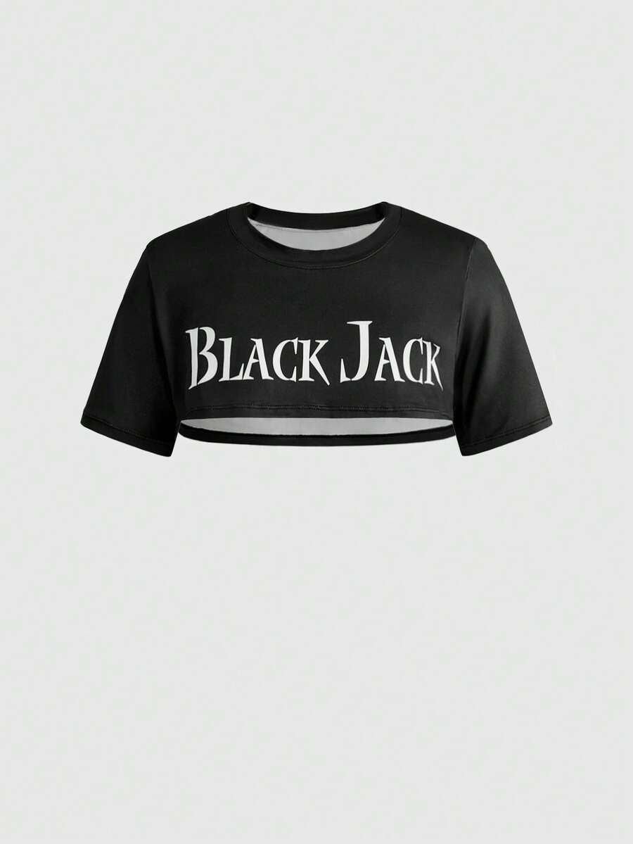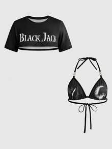 Black Jack X ROMWE مجموعة سوتيان لاسلكي وتي شيرت أكمام قصيرة مطبوع عليها رسم جاك الأسود لمهرجان الموسيقى الشارعي للنساء، 2 قطعة