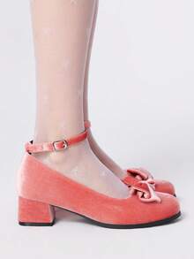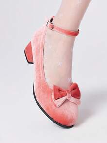Kawaii أحذية نسائية مسطحة ذات كعب سميك مدبب الأصبع مزينة بالفيونكة وفتحات