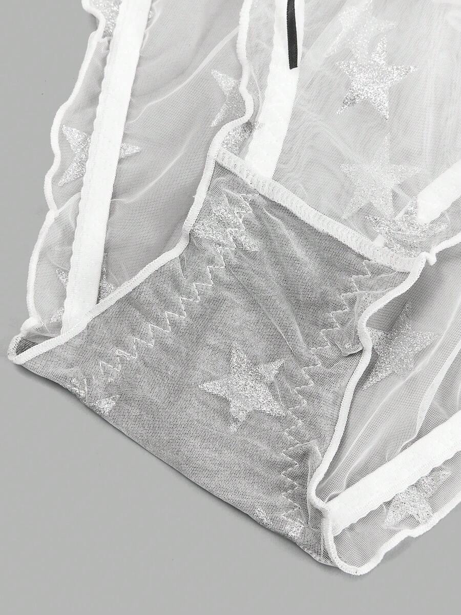 سروال داخلي مزخرف بعقدة الفراشة مقلم دانتيل