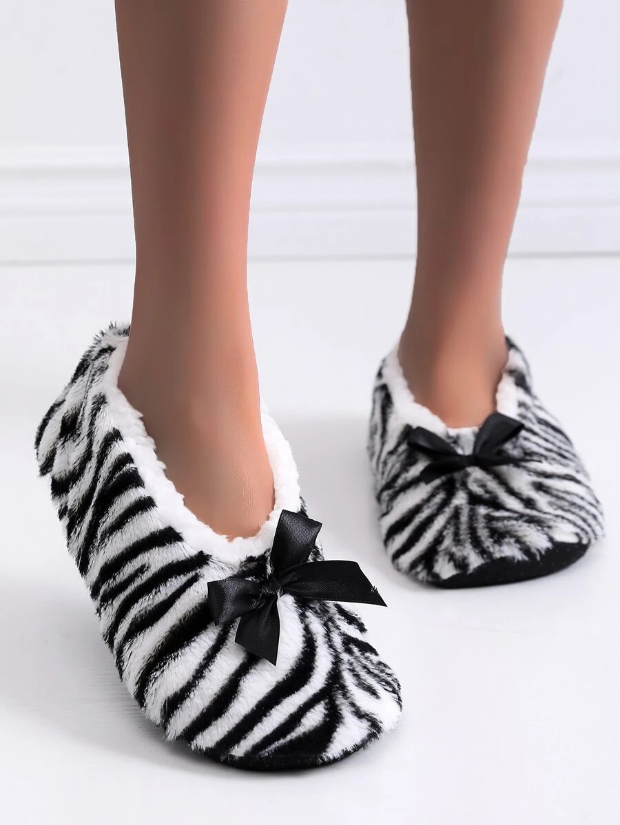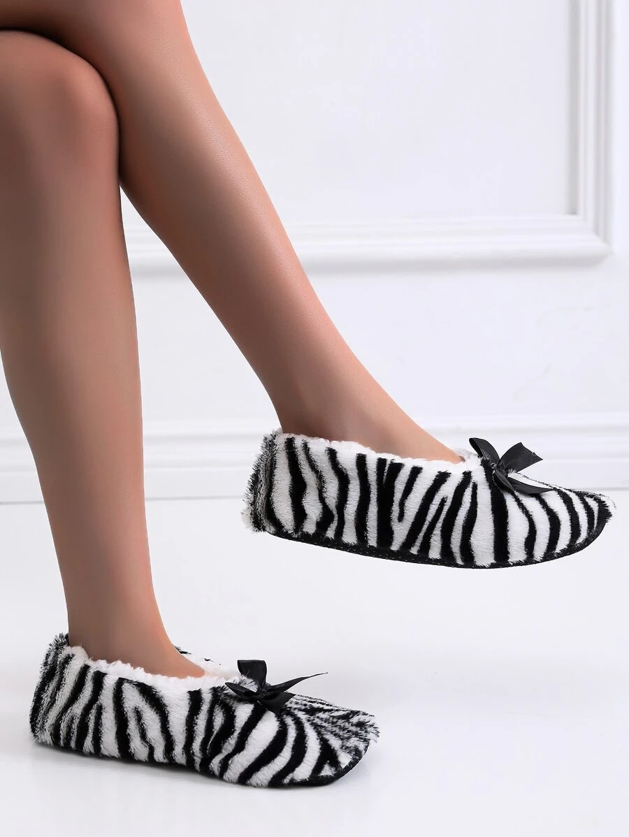 شبشب زغبي بطباعة الحمار الوحشي مزخرف بقوس