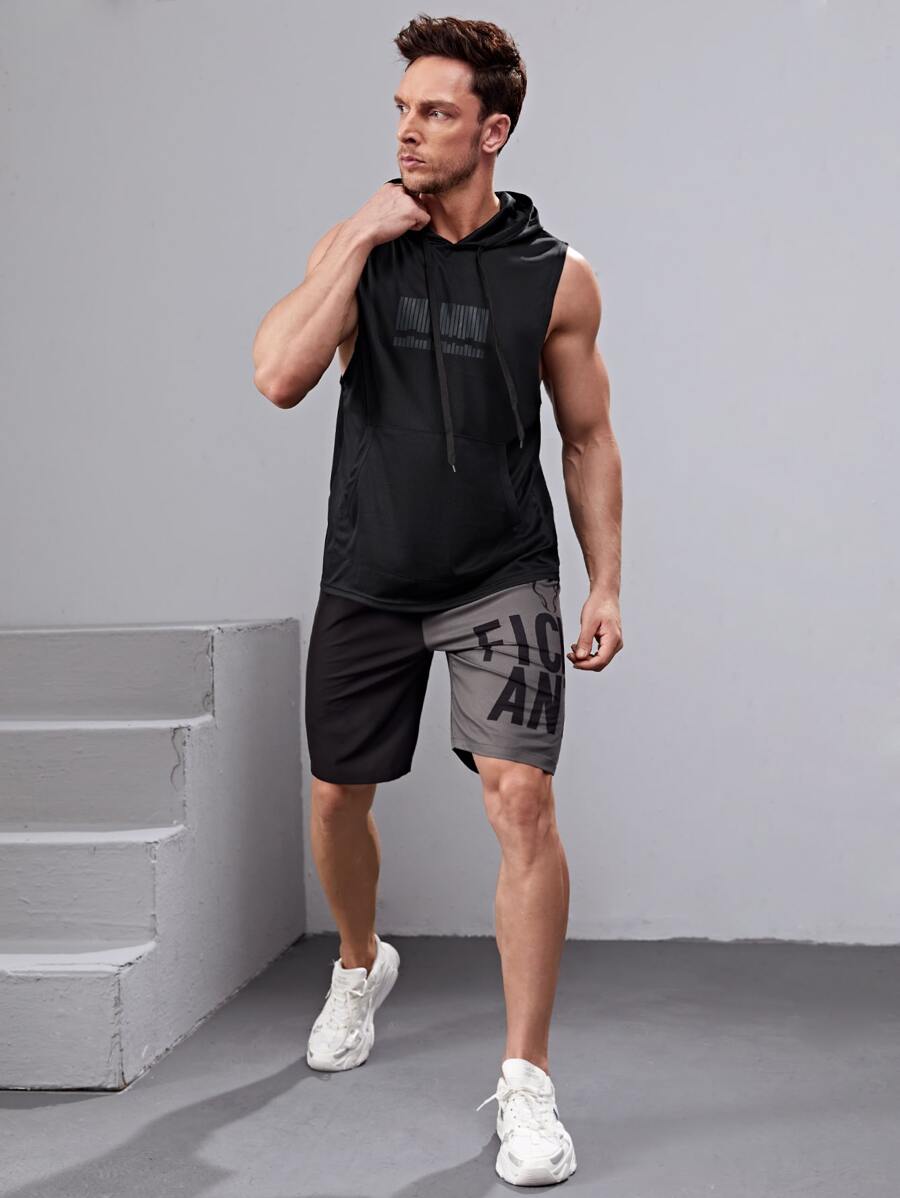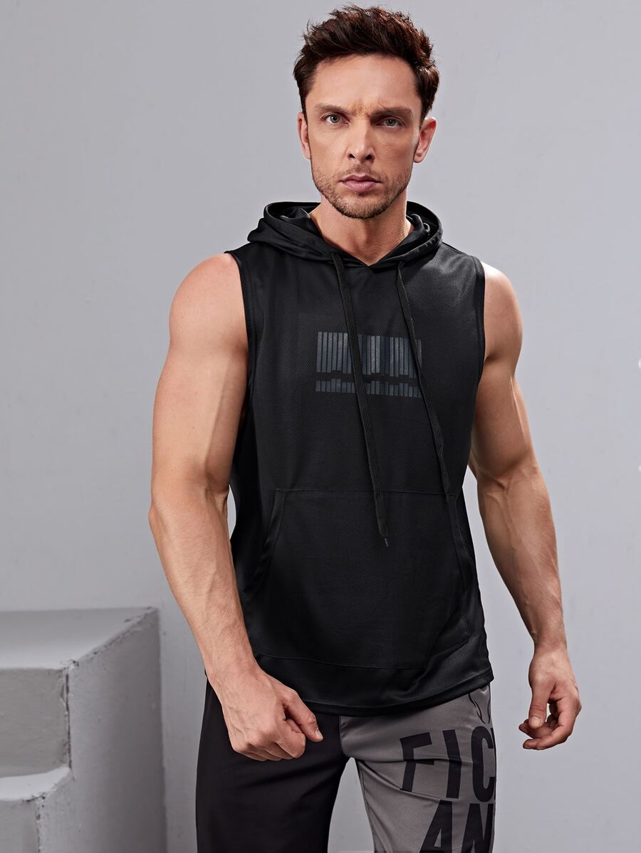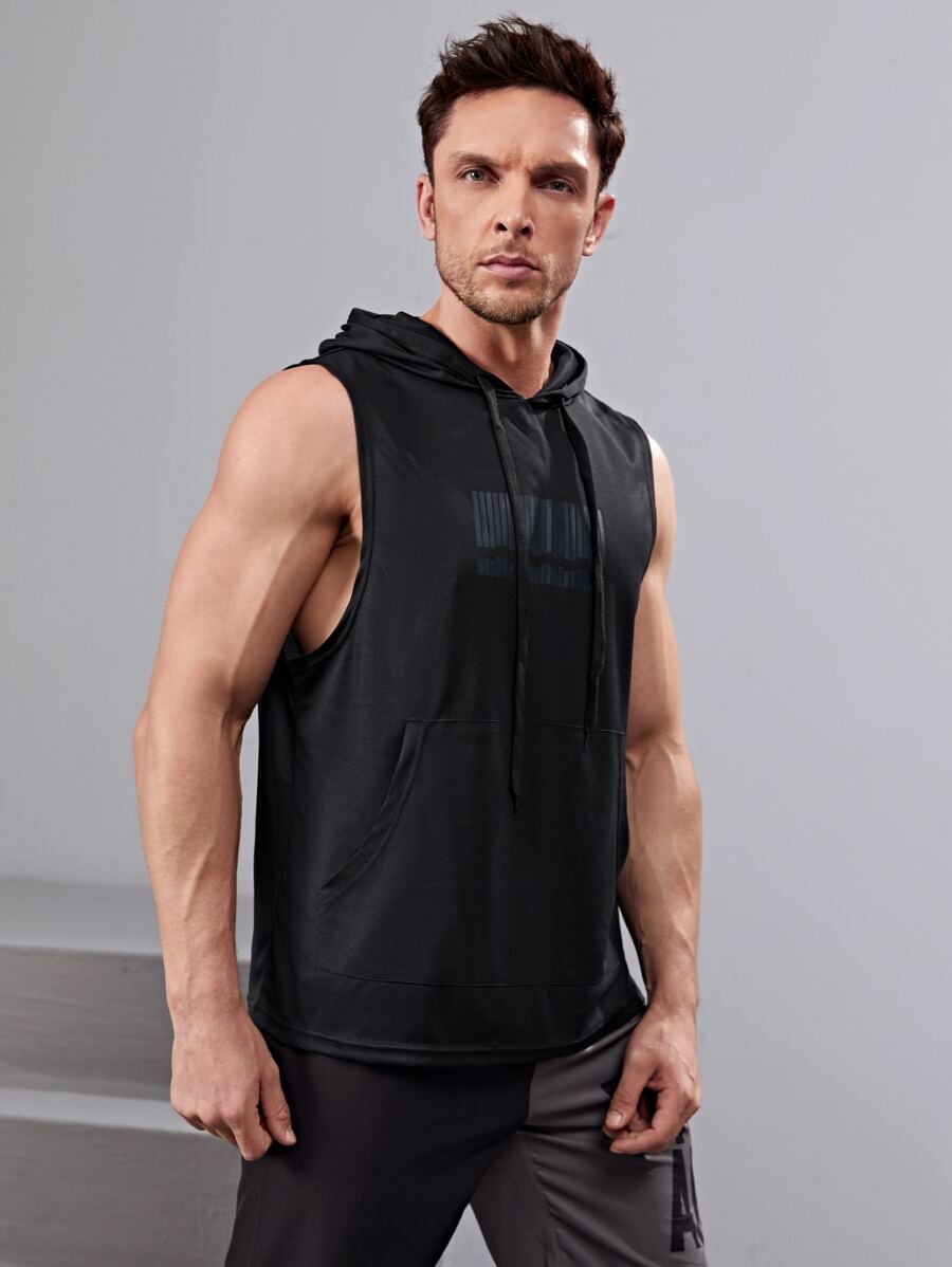 خزان رياضي للرجال بغطاء كانغرو وخيط سحب، بغطاء للرأس، بطراز صاحب