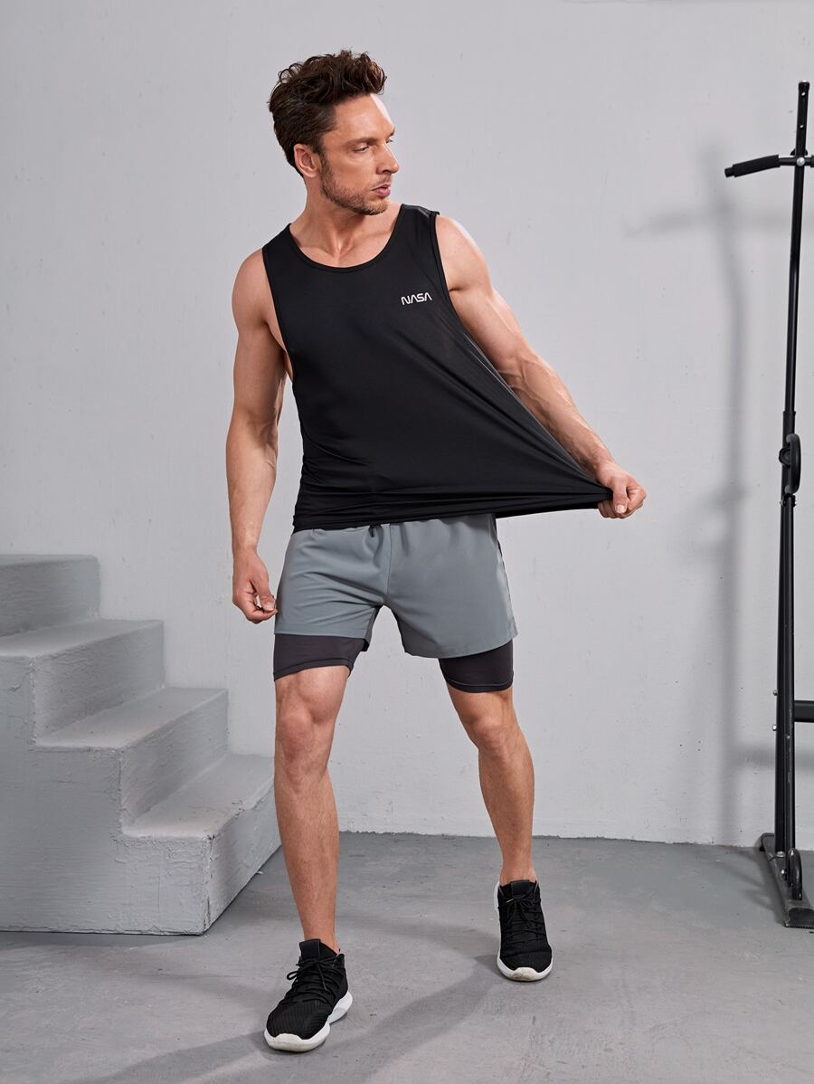 Manfinity Fitness مجموعة توبات رياضية رجالية بطباعة حرفية بطراز الصديق، توب بيسكي للتمارين