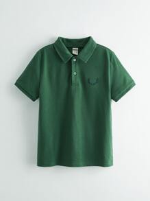 قميص بولو رياضي بأكمام قصيرة مطرز بقرون الغزلان للأولاد، صيفي، للأطفال الكبار