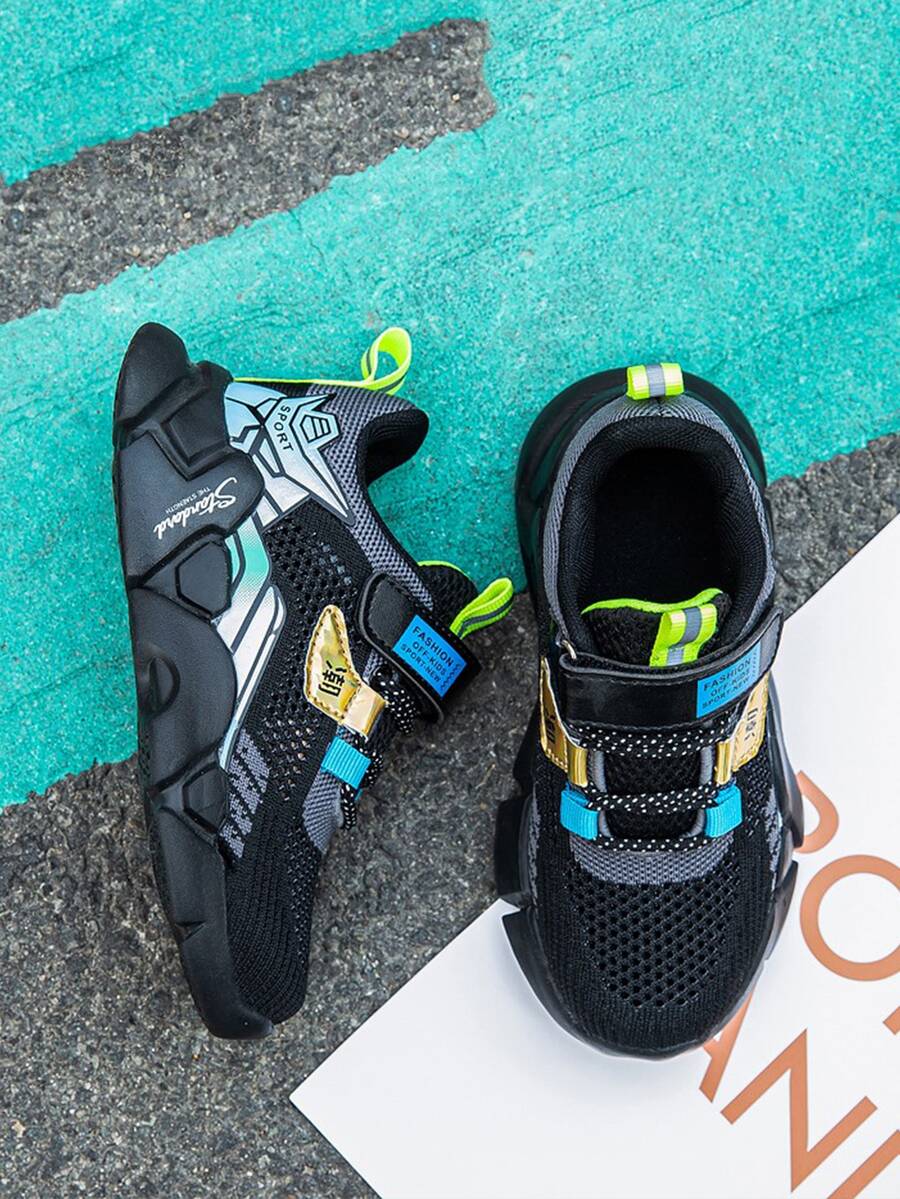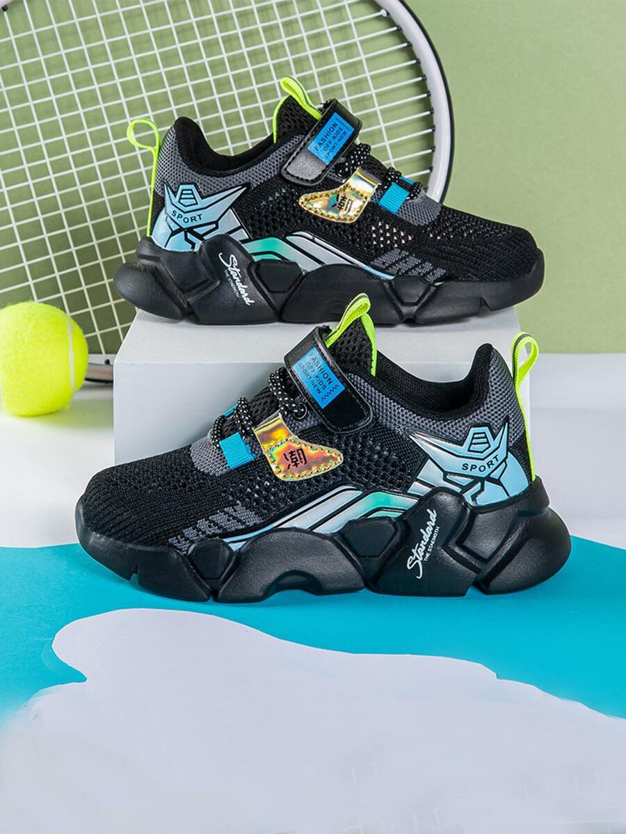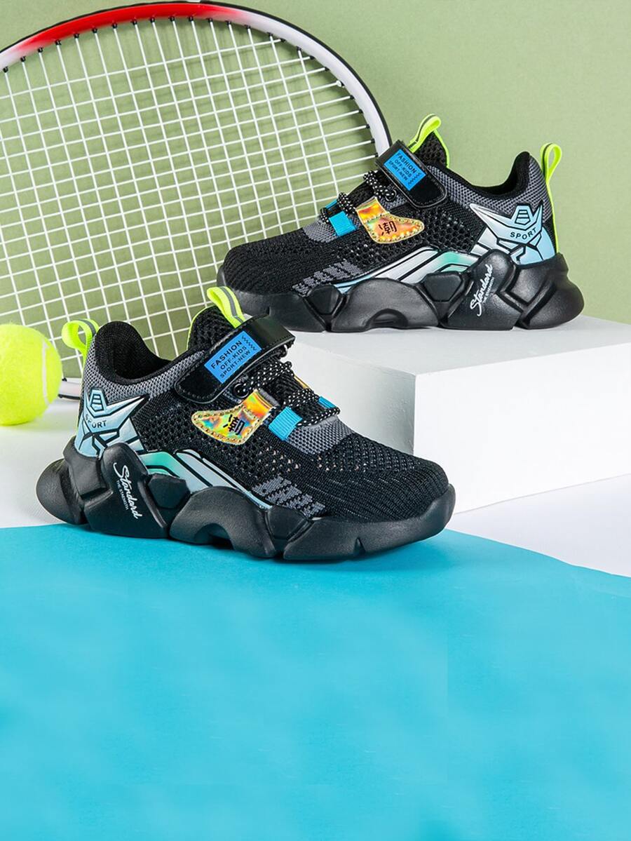 حذاء رياضي مكتنز محبوك بجرافيك عبارة صيني للاولاد