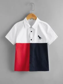 قميص بالوان متجانسة بطباعة ديناصور للاولاد