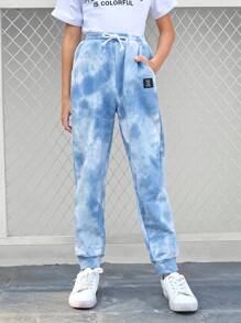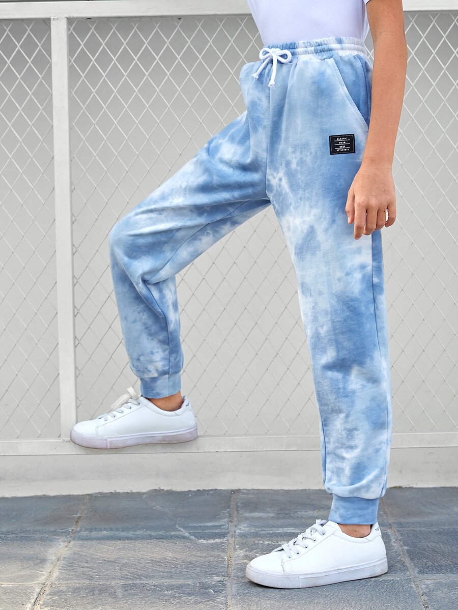 بنطلون رباط خصر بتفاصيل مرقع صبغ متعادل ولد