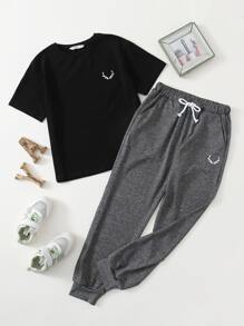 طقم توب بطباعة جرافيك وبنطلون رياضي أولاد