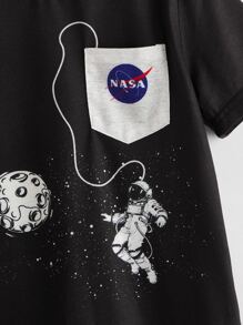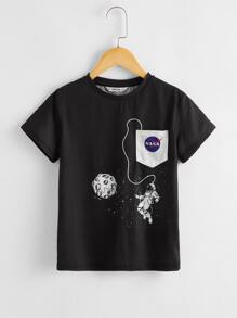 لباس علوي بطباعة جلاكسي وبجيب امامي للاولاد
